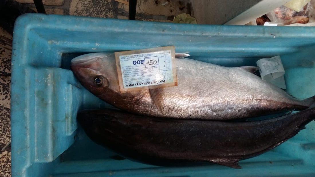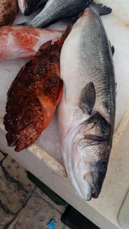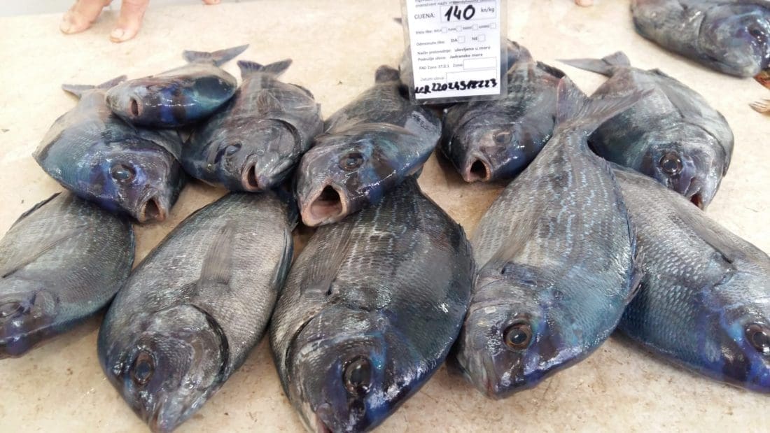 Ribe na peškariji ima. Nije puno smetalo malo bure. Srdele su male, al nađe se i koja manekenka. Traži se 20 kuna. Cijene su već ka' usrid sezone pa su lignje 150 ka i sipe s Kornata, a oveći lubin je 200 kuna kilogram. Taman 100 eura. I kantar se pojavio sa svim svojim bojama. Računa se da je to bila riba druge klase, al po cijeni od 140 ne bi se reklo. Gof po 150 kuna čeka u kašeti svog kupca.