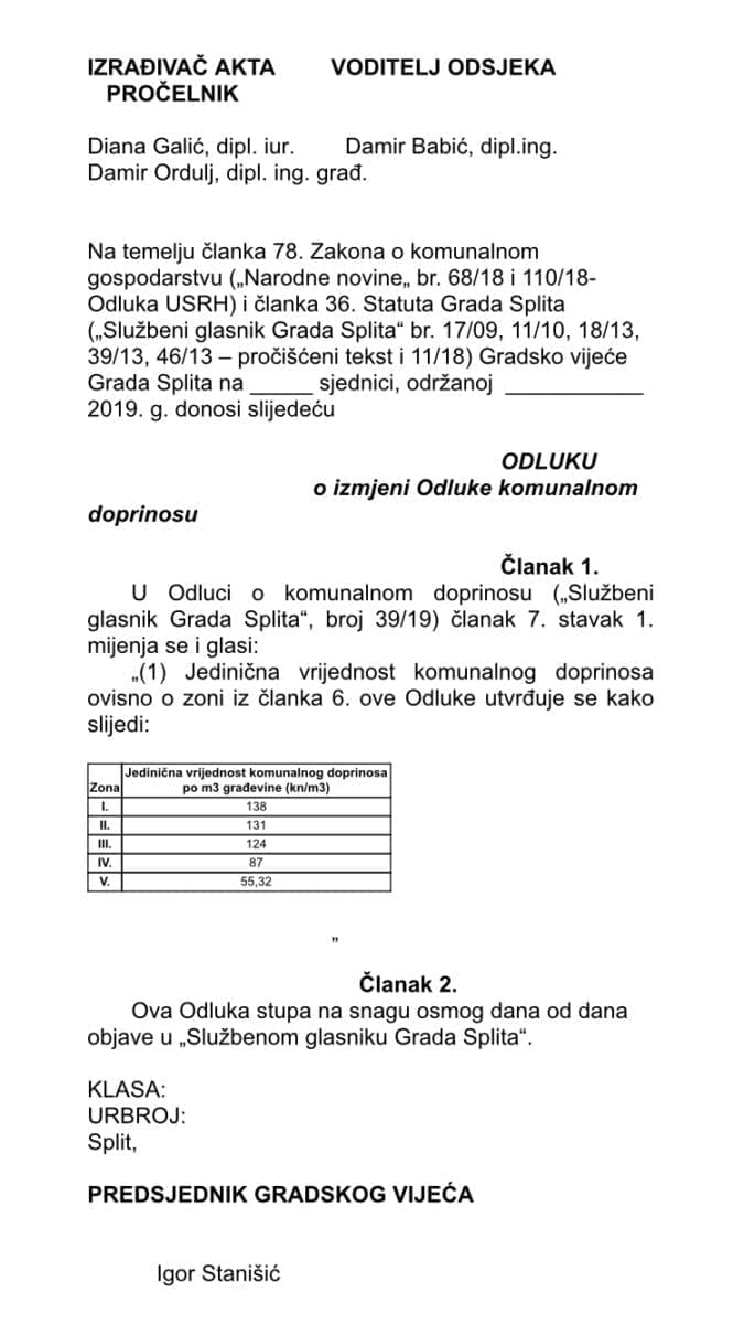 - Hvala kolegicama i kolegama na podršci za izmjenu Odluke o komunalnom doprinosu. Cijena za 4 i 5 zonu je vraćena u kakvu takvu normalu. Gradonačelnik je još jučer najavio dublju analizu svega. Nema smisla da cijene definiramo iste unutar svakog GK i MO. Nije isto centar Žrnovnice i Amižići. Kao što vidite odluka je bila skoro pa jednoglasna pa je zasluga svih opcija koje participiraju u GV. Kad se male ruke slože, sve se može! - napisao je.