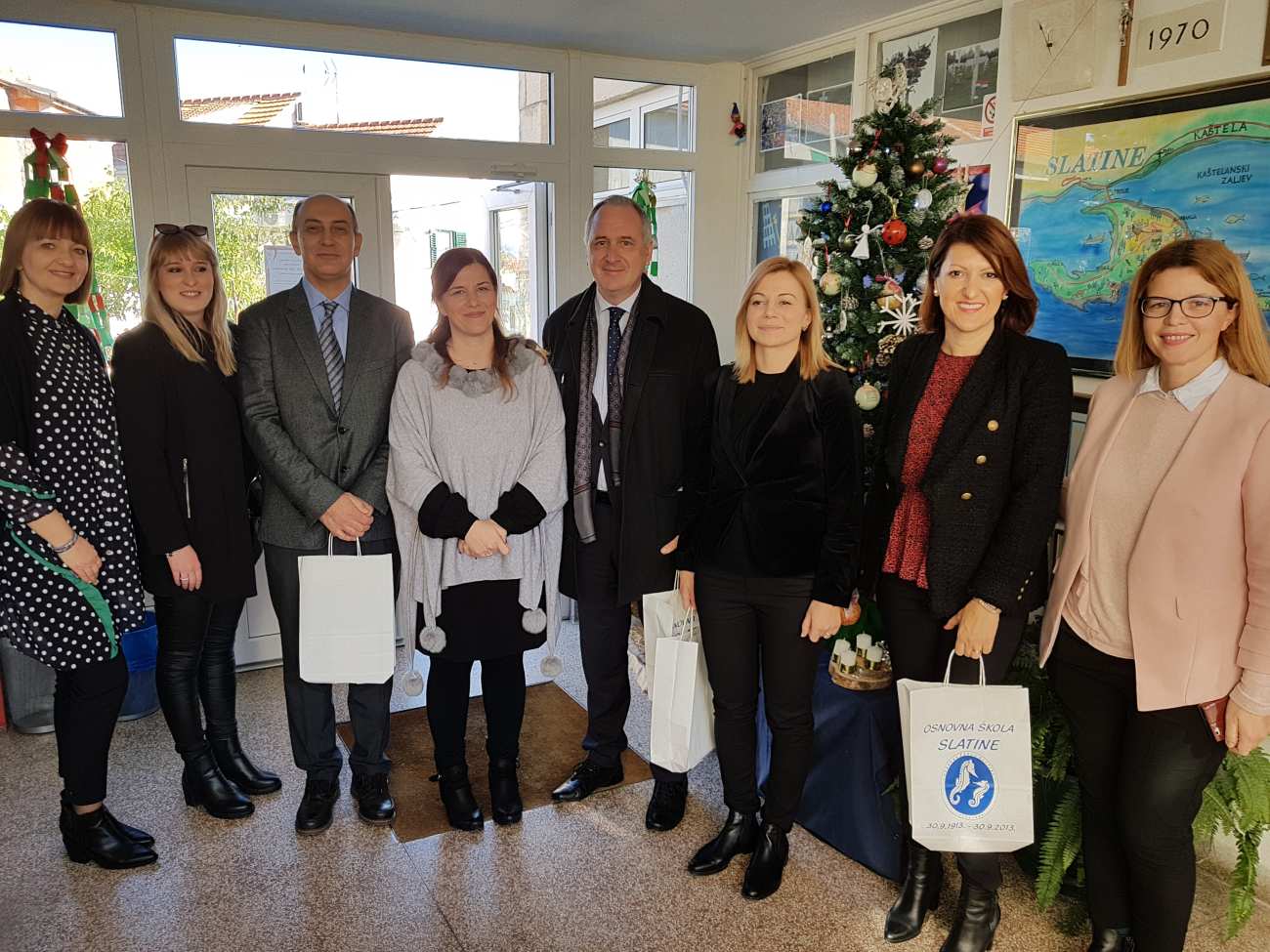 Prilikom današnjeg posjeta Slatinama gradonačelnik Krstulović Opara sa suradnicima obišao je i Osnovnu školu Slatine gdje ga je zajedno sa školskim osobljem dočekala ravnateljica Željka Ninčević. Razgovarali su o uspjesima slatinskih osnovaca i predanom radu i brizi u školskom masliniku te dogovorili intervencije u održavanju i poboljšanju uvjeta na školskom igralištu i samoj školi.