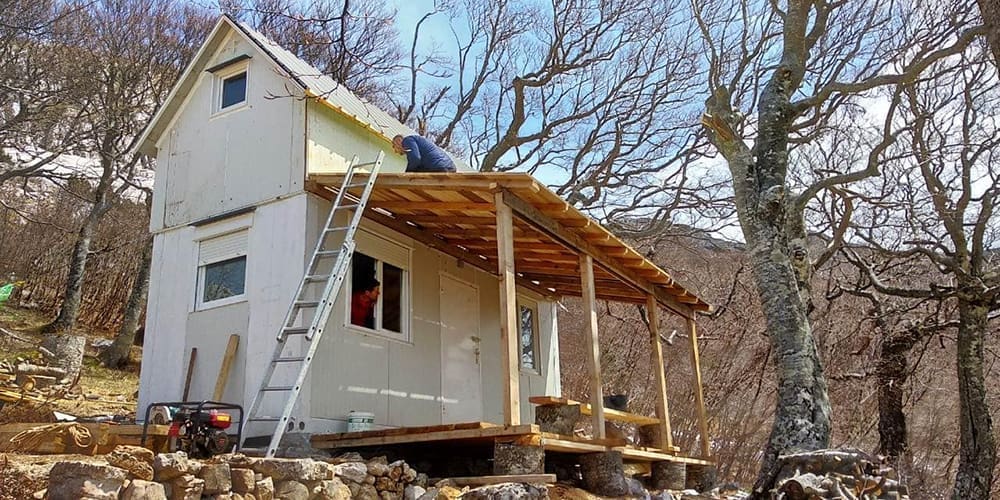 Kontejner je nadograđen, a zahvaljujući majstorskim vještinama članova kluba od prazne kutije je postao prava udobna kućica: dobio je krov i potkrovlje obloženo drvom u kojem može prespavati do 9 osoba, kuhinju sa stolom i klupama, peći i prostranim natkrivenim trijemom, te ostavom za ogrjevno drvo i nužni alat, kao i rasvjetu iz solarnih panela.