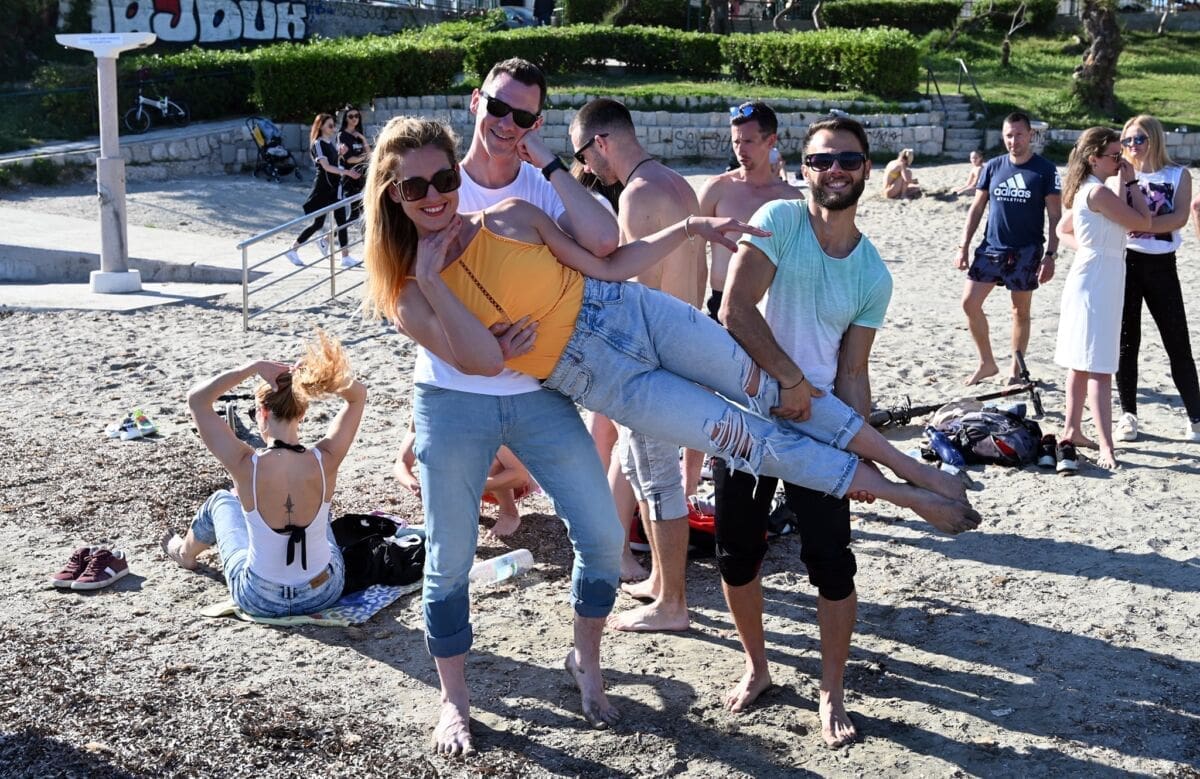 Veselo je bilo u poslijepodnevnim satima na najpoznatijoj splitskoj plaži, onoj na Bačvicama. Plaža i plićak bili su idealna kulisa plesa nekoliko desetaka parova. Radi se o istoj ekipi koja zna zaplesati na Rivi, sada su "preselili" na Bače.
