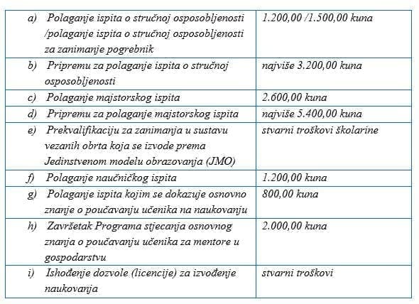 - stjecanja obrazovanja za obavljanje vezanih obrta sukladno programima obrazovanja/ispita koje donosi javnopravno tijelo nadležno za obrt za zanimanja koja su definirana Pravilnikom o vezanim i povlaštenim obrtima i načinu izdavanja povlastica („Narodne novine“, broj 42/08)