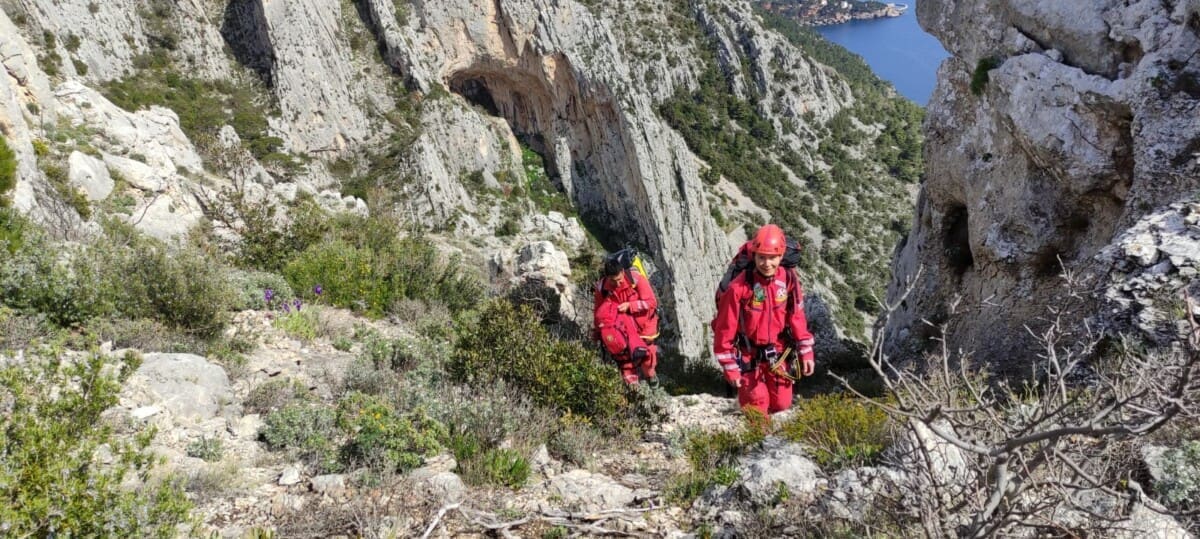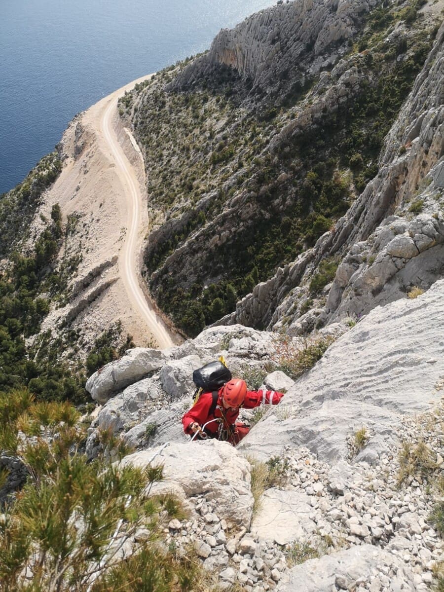 Brzo je, helikopterom HRZ-a, iz Splita stigla ekipa gorskih spašavatelja koje su se iskrcali na visoravni s koje je trebalo gotovo sat vremena pješačiti do ruba stijene.