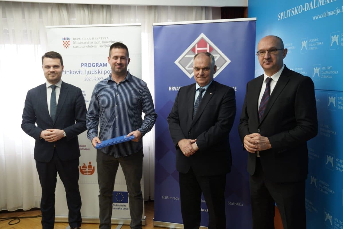 U Splitsko-dalmatinskoj županiji danas su dodijeljena 32 ugovora vrijedna više od 25 milijuna eura u okviru poziva „ Zaželi – prevencija institucionalizacije“. Ugovore su dodijelili državni tajnik Ivan Vidiš, župan Splitsko-dalmatinske županije Blaženko Boban i ravnatelj Hrvatskog zavoda za zapošljavanje Ante Lončar.
