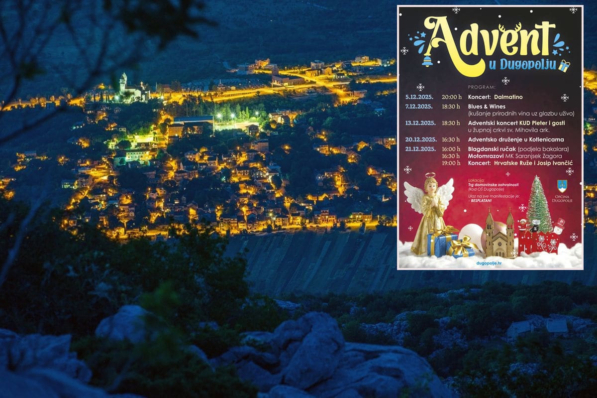 U Općini Dugopolje priprema se adventsko druženje uz raznovrstan program za sve posjetitelje. Advent u Dugopolju počinje ovaj petak, 5. prosinca, uz nastup grupe Dalmatino koja će zabavljati publiku od 20:00 h na središnjem Trgu domovinske zahvalnosti (preko puta zgrade OŠ Dugopolje). Program se nastavlja u nedjelju, 7. prosinca na istoj lokaciji, gdje se priprema glazbena kulisa uz atmosferu Blues&Wines od 18:30 h.
