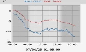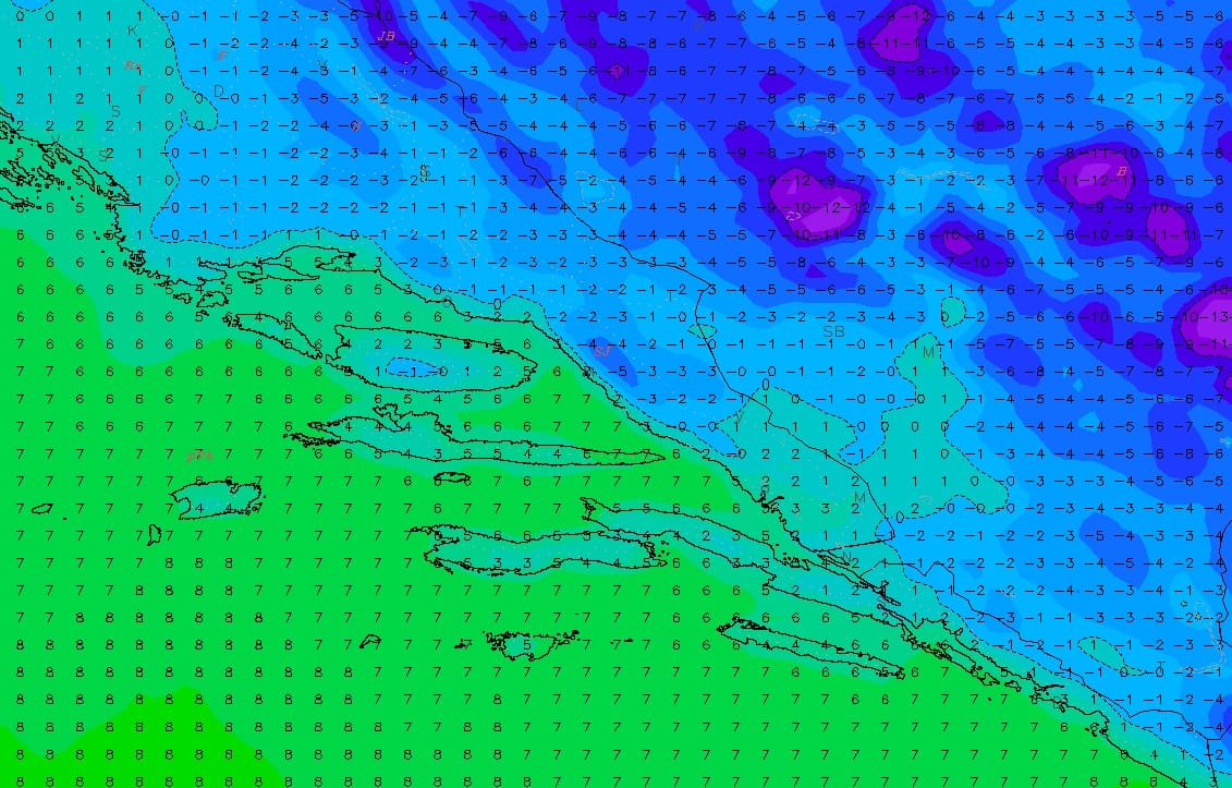 U noći s nedjelje na ponedjeljka u Dalmaciji i ostatku zemlje prevladavaju zimske temperature zraka, osobito u planinama. U 1 sat iza ponoći na Sinjalu, najvišem vrhu Hrvatske, izmjereno je -12°C. Na Velikoj Duvjakuši temperatura se spustila na -10°C, ali uz vjetar preko 100 km/h osjet hladnoće pao je ispod -20°C. Nažalost, dio Dalmatinske zagore bilježi opasni proljetni mraz, ponajviše u naseljima u blizini granice s BiH. S obzirom na voće u cvatu, nadamo se da temperatura neće padati značajno ispod nule jer bi takva pojava mogla donijeti štete u poljoprivredi.