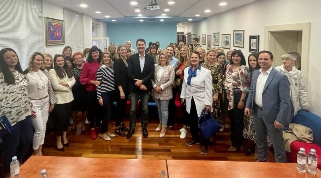 "Puna podrška našem kandidatu i budućem gradonačelniku Splita dr. Zoranu Đogašu koji se večeras družio s članicama Zajednice žena Katarina Zrinski!", objavili su nakon sastanka.