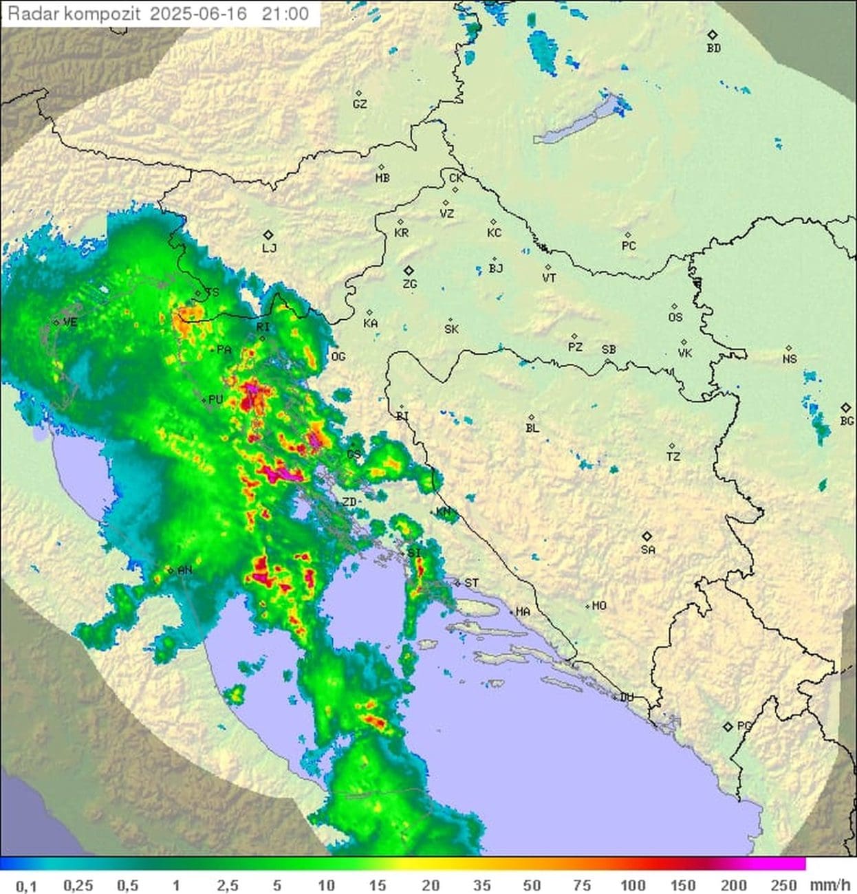 Tijekom jučerašnjeg dana i noći na utorak olujni sustav prišao je s područja sjeverne Italije i svom silinom udario u dijelove sjevernog i srednjeg Jadrana. Nevrijeme je najviše štete donijelo zapadnoj obali Istre, osobito okolici Rovinja gdje su na olujnoj fronti na moru zabilježeni orkanski udari zapadnog vjetra preko 120 km/h. Zbog toga se nasukalo više desetaka brodica, stotine stabala je palo na prometnice i šetnice, a nekoliko ljudi je ozlijeđeno uslijed nevremena.