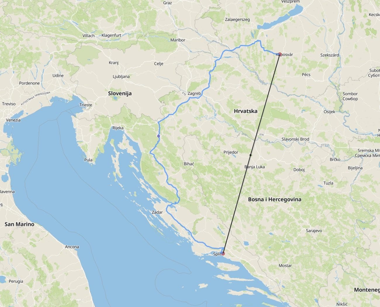 Nevrijeme se potom počelo premještati prema Dalmaciji gdje je lokalno također bilo neželjenih posljedica. Najopasnija situacija dogodila se između 22:30 i 23:00 kada se dogodila havarija katamarana Melita. Srećom, u ovoj havariji nitko nije ozlijeđen i svi su putnici spašeni.