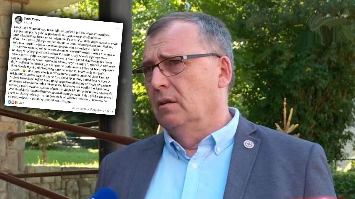 "Dragi moji! Nisam mogao ni zamisliti u kojoj će mjeri biti lajkan, komentiran i dijeljen moj post o gubitku povjerenja u stožer, izazvan kontinuiranim proturječnostima, koje nam se putem medija serviraju. I dalje stojim iza svake svoje riječi iz te objave. Ali osjećam potrebu da se ovim putem ispričam svim ljudima, koje sam možda uvrijedio svojim mišljenjem, a tu prvenstveno mislim na zdravstvene radnike, koji se s ovom dramom bore kako znaju i umiju. I to iz srca, a ne zbog skupljanja političkih bodova. Komentari, koji dovode u pitanje moju 'stručnost' su potpuno promašeni, jer zaista nisam bas nikakav stručnjak i nisam svoj post objavio u nekom stručnom biltenu, nego na svojoj fb stranici. A nadam se da još uvijek u demokraciji, za koju smo se borili, imamo pravo na svoje mišljenje!? Ili mi možda slijedi Goli otok, zbog same činjenice što imam svoje mišljenje?! I dok puno više ljudi ovoga trena u svijetu umire od gladi, kao i od nekih drugih bolesti, koje se eto ne zovu Covid 19, o tome u medijima ni slova", napisao je.