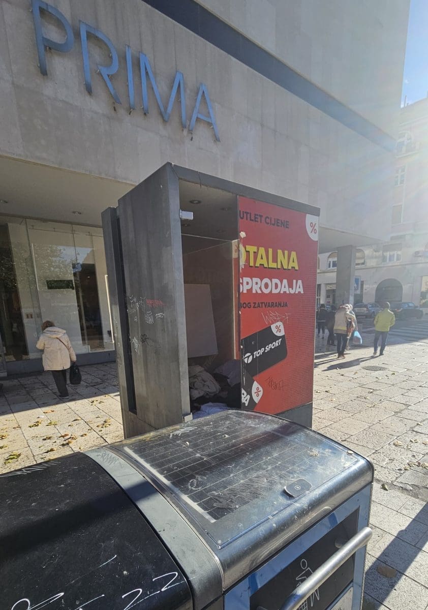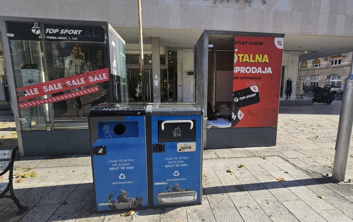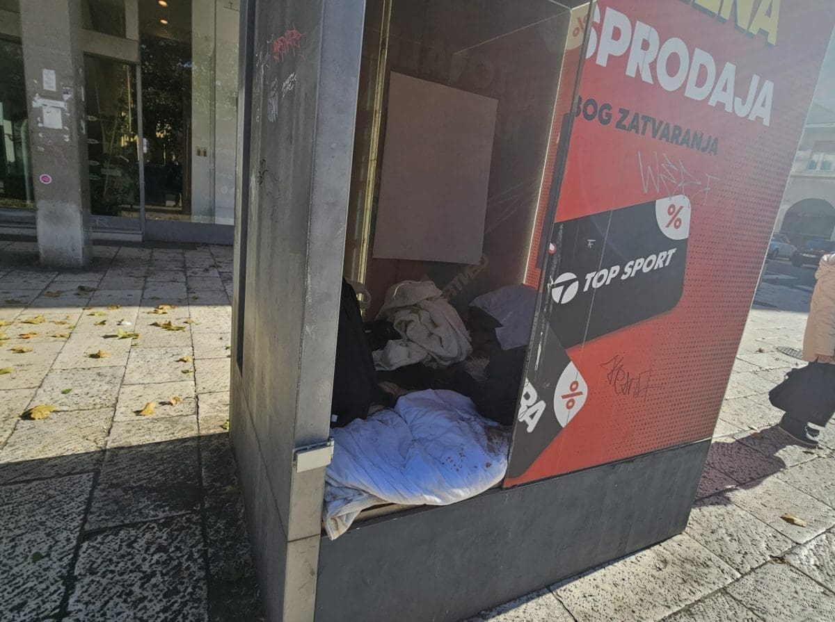 U samome središtu Dalmacije, u srcu Splita i tamo gdje umjetnost vodi svoj bal a izlozi prošlosti zjape prazni, smjestio se nečiji krevet, nečije sve što ima. Ispred nekadašnje Robne kuće Prima Grad nekoliko je popluna, jedan ruksak i nešto odjeće - u izlogu u kojem su nekada stajale najljepše obučene lutke ovoga kraja.