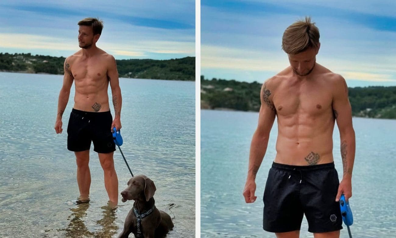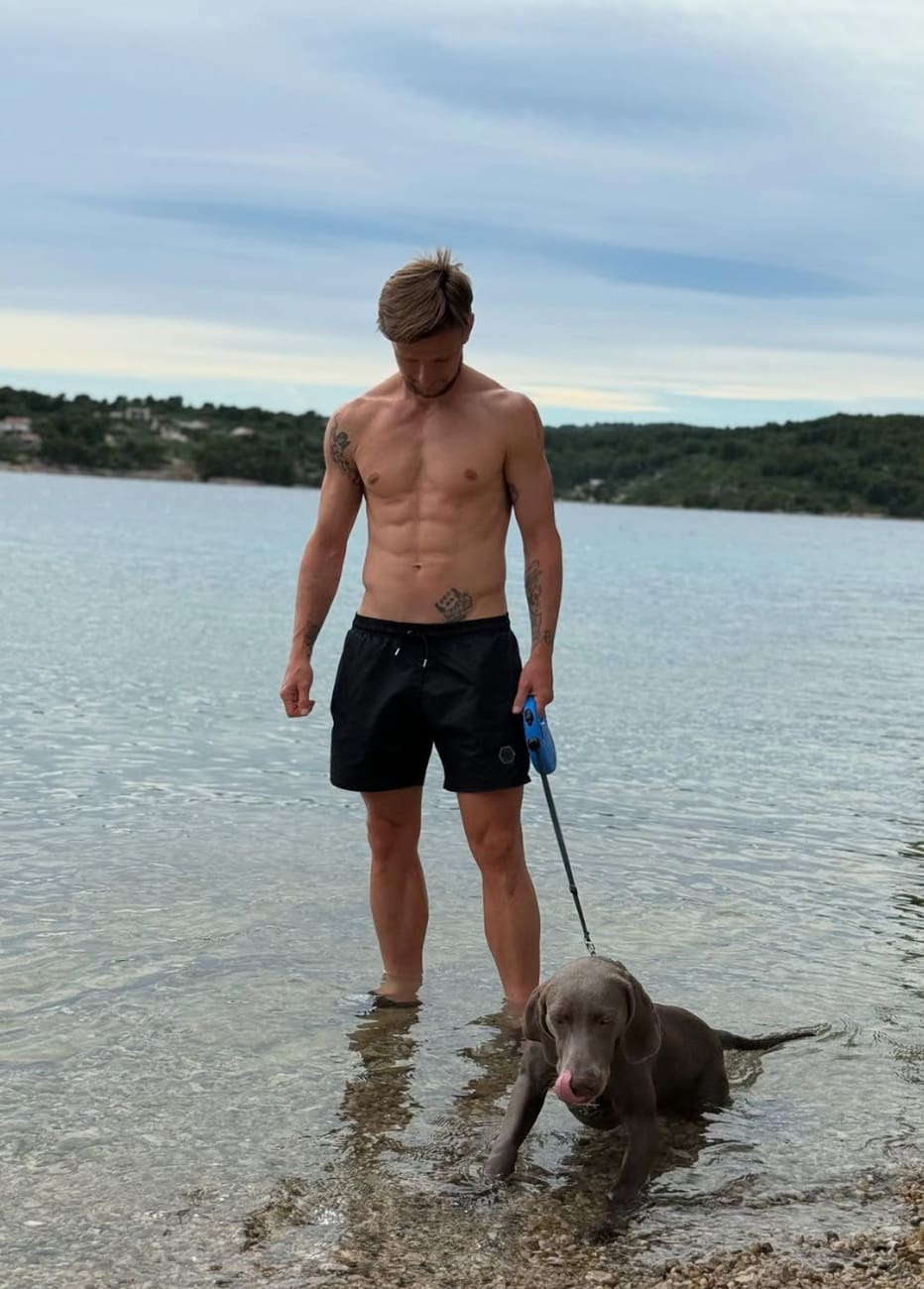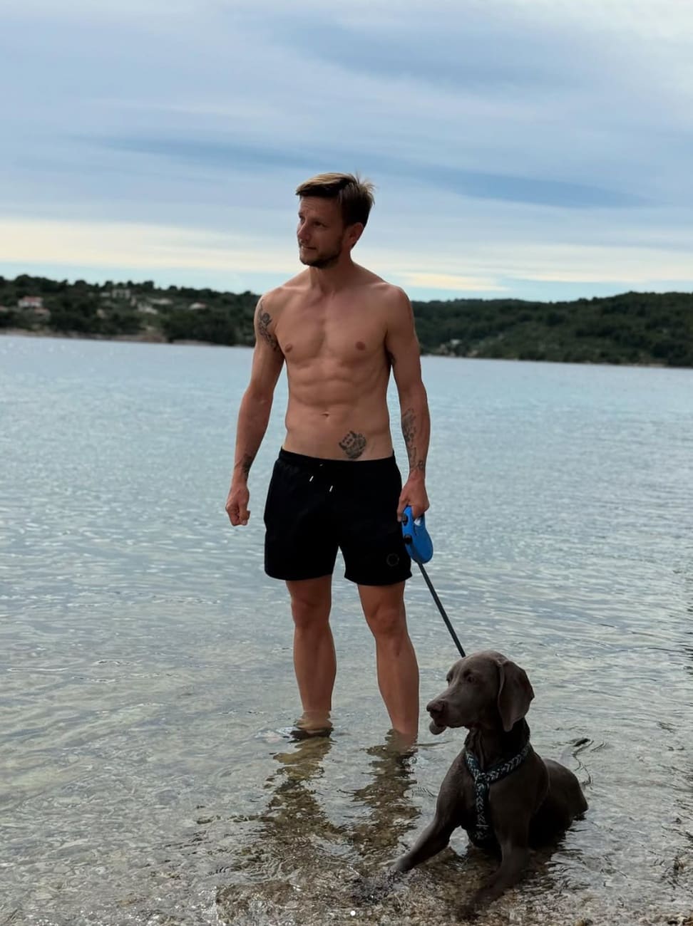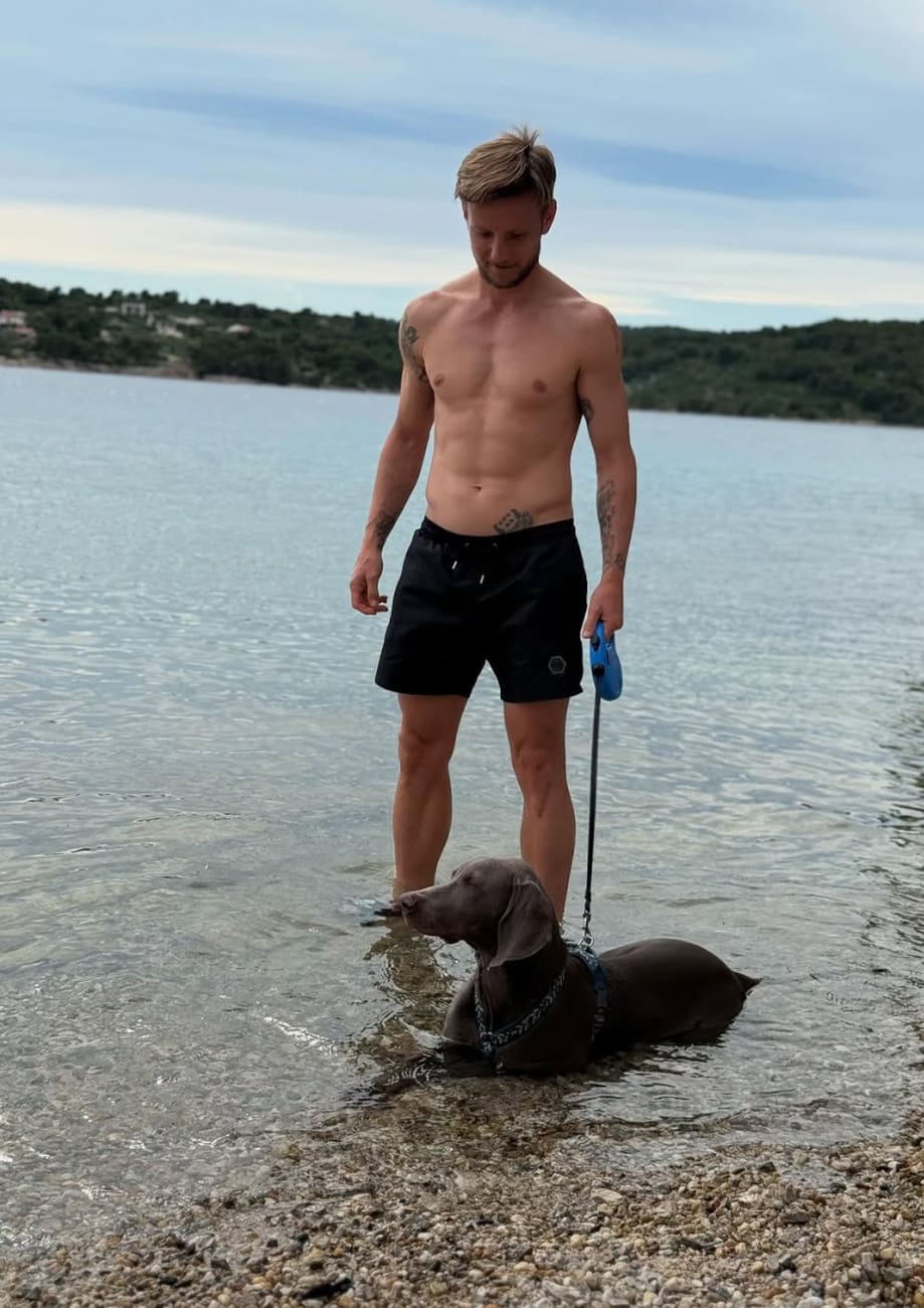 Ivan Rakitić, 37-godišnji veznjak Hajduka, čini se da vrijeme odmora koristi jednako ozbiljno kao i minute na travnjaku. Na Instagramu je objavio fotografiju s plaže na kojoj bez majice ponosno pokazuje isklesani torzo, a društvo mu pravi pašeni vajmarski ptičar Dumbo, kojeg je javnosti predstavio početkom godine.
