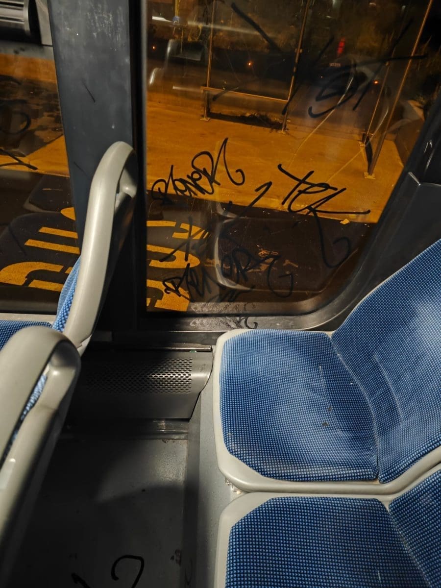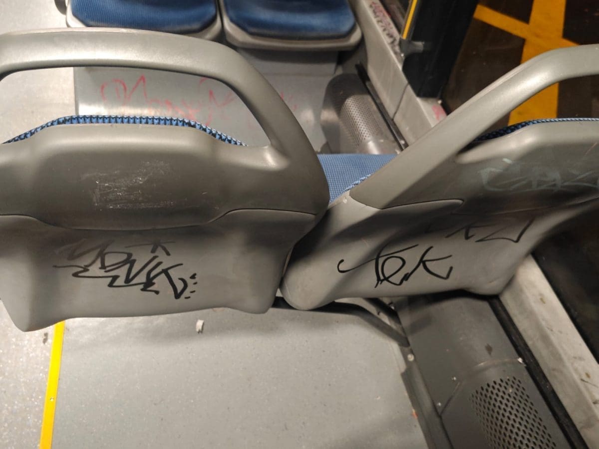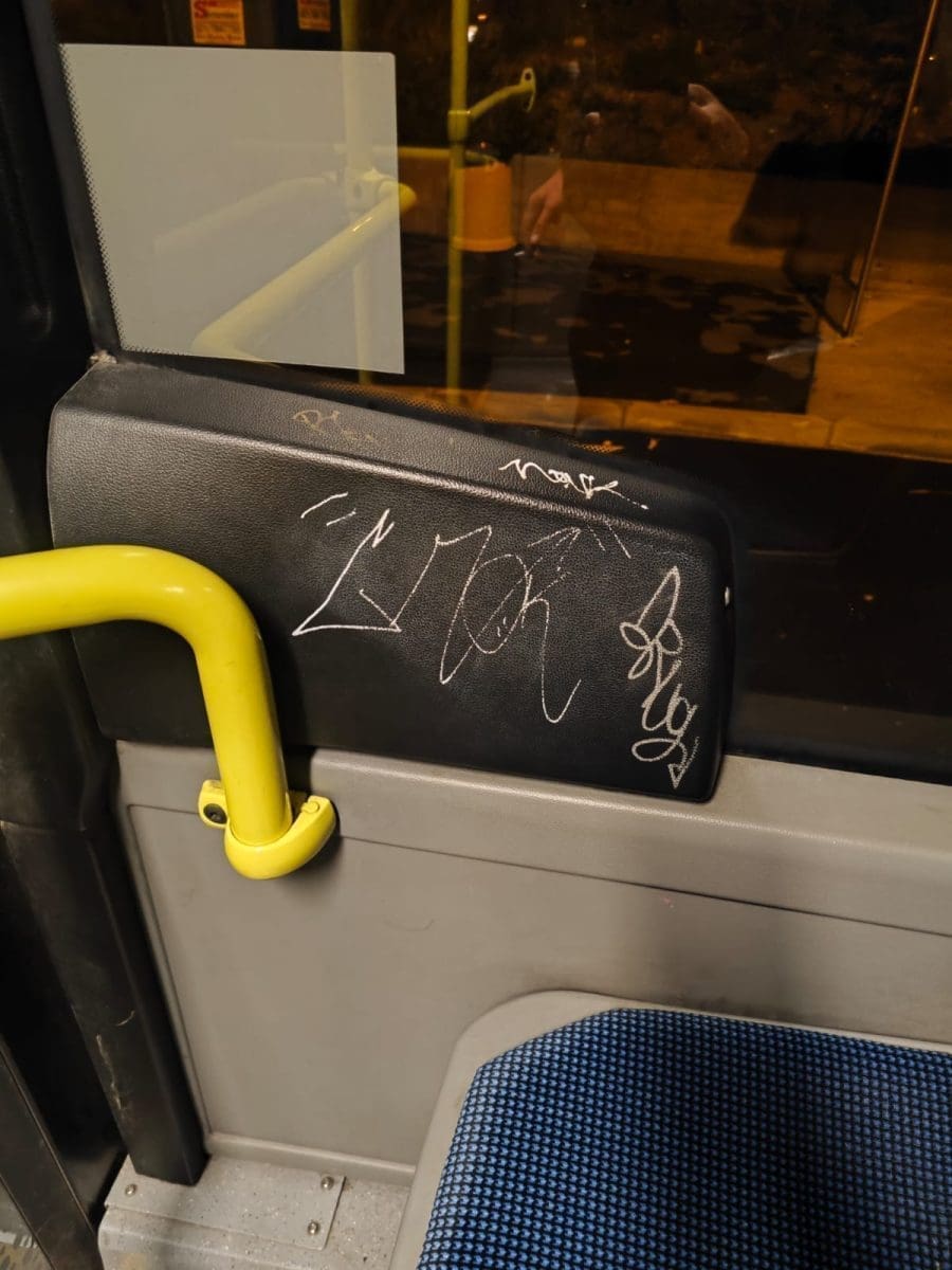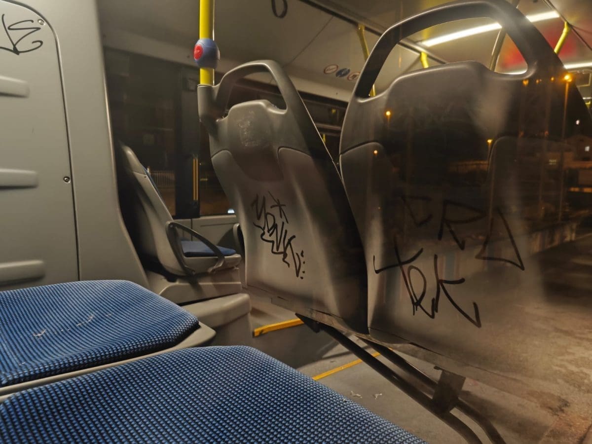 Vozač javnog gradskog prijevoza u Splitu obratio se redakciji portala Dalmacija Danas s molbom za pomoć. Kako tvrdi, a i potkrepljuje fotografijama, nepoznati vandal ili pak više njih tijekom poslijepodnevnih sati subote markerom na više sjedala, podu i bočnim unutarnjim stranicama autobusa, kao i na staklenim prozorima ispisali grafite.