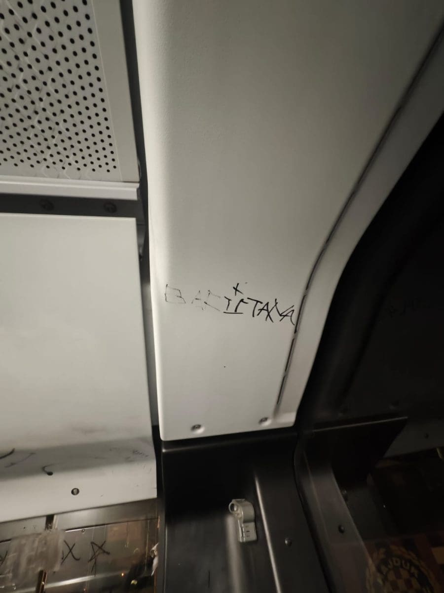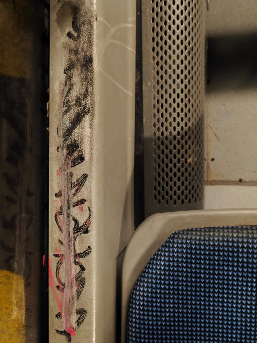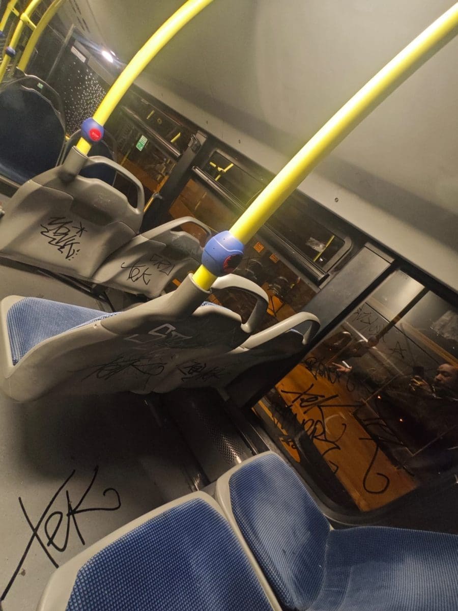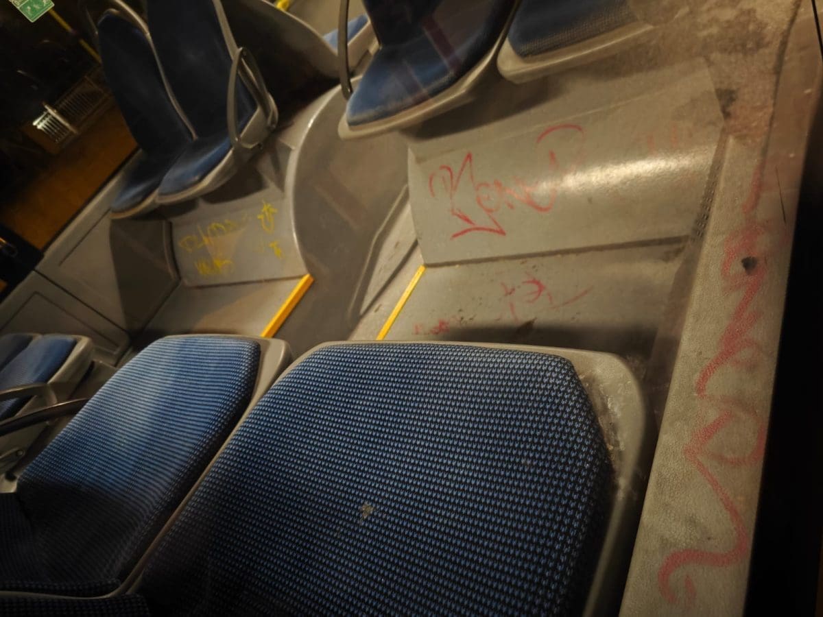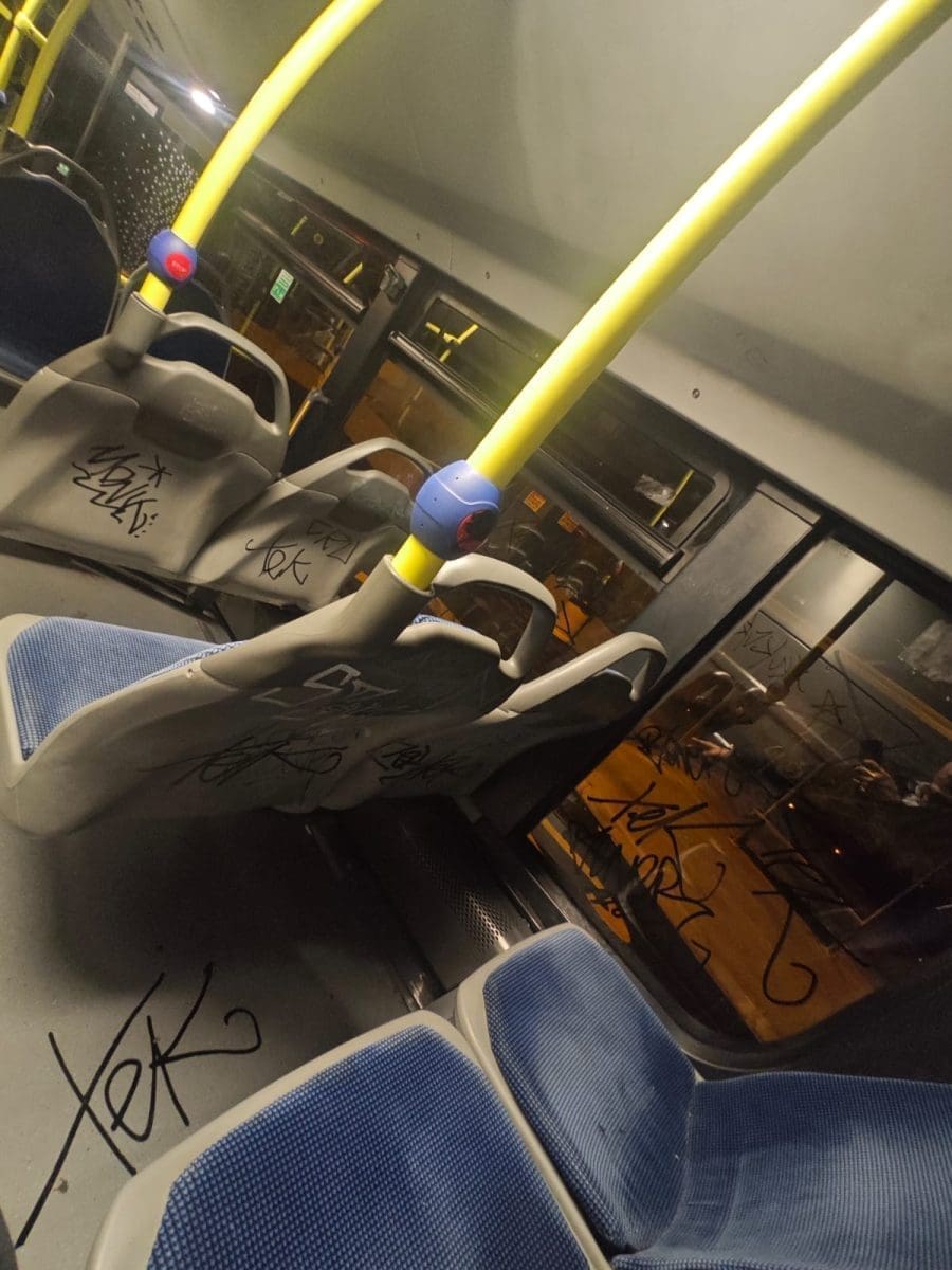 Vozač javnog gradskog prijevoza u Splitu obratio se redakciji portala Dalmacija Danas s molbom za pomoć. Kako tvrdi, a i potkrepljuje fotografijama, nepoznati vandal ili pak više njih tijekom poslijepodnevnih sati subote markerom na više sjedala, podu i bočnim unutarnjim stranicama autobusa, kao i na staklenim prozorima ispisali grafite.