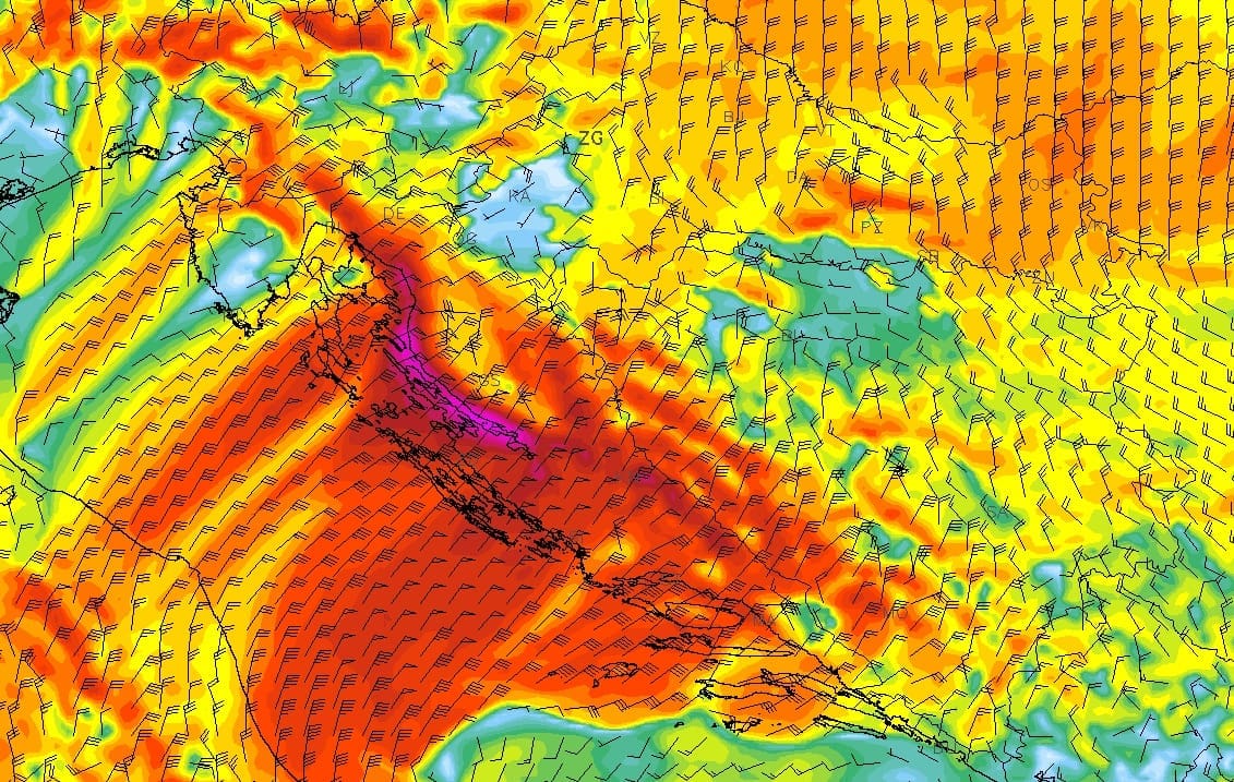 Iako će malo kiše ponegdje biti do kraja dana, značajnije oborine očekuju se u petak, mahom u noći i tijelom jutra kada će lokalno biti i grmljavinskih pljuskova. Mjestimice će pasti preko 30 litara oborine po metru kvadratnome. U planinama će kiša prijeći u snijeg, a pri kraju oborina snježna granica u Dalmatinskoj zagori ponegdje će pasti ispod 500 metara nadmorske visine. Prema kraju dana i navečer oborine će prestati, navečer će se i djelomično razvedriti. U noći će puhati umjereno do jako jugo koje na moru srednje i južne Dalmacije može imati olujne udare. Već tijekom jutra na sjevernom Jadranu će zapuhati jaka do olujna bura, brzo će se danju širiti na ostatak Jadrana. Podno Velebita će puhati olujna bura s orkanskim udarima, na nekim lokacijama najjači udari mogu prelaziti 180 km/h pa se očekuju veći problemi u cestovnom prometu i zatvaranja pojedinih dionica. Za one koji se spremaju na put kroz Liku, tamo se očekuje obilniji snijeg, a uz probleme s vjetrom bit će većih problema u cestovnom prometu. Najtoplije će biti ujutro i sredinom dana, najviše dnevne temperature od 8 do 15°C. Popodne i osobito navečer zamjetno zahlađenje.