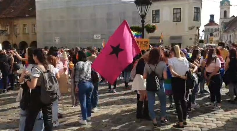 Postoji osnovana sumnja da je petoosumnjičenica, nakon prethodno opisanog događaja u kojem su sudjelovali prvoosumnjičenik, drugoosumnjičenik, trećeosumnjičenik i četvrtoosumnjičenik; u nakani izazivanja netrpeljivosti prema osobama drugačijeg spolnog opredjeljenja; prišla muškoj, a potom i ženskoj osobi, pripadnicima LGBTIQ zajednice, koji su mobitelom snimali paljenje zastave duginih boja te ih počela vrijeđati, nakon čega je muškarca udarila rukom u predjelu čela, a ženu udarila rukom po desnoj strani lica. Petoosumnjičenica je potom, osnovano se sumnja, prišla novinarki koja je također snimala paljenje zastave te, pretpostavljajući da je i ona pripadnica LGBTIQ zajednice, vrijeđala ju i omalovažavala te ju udarila rukom u čelo.
