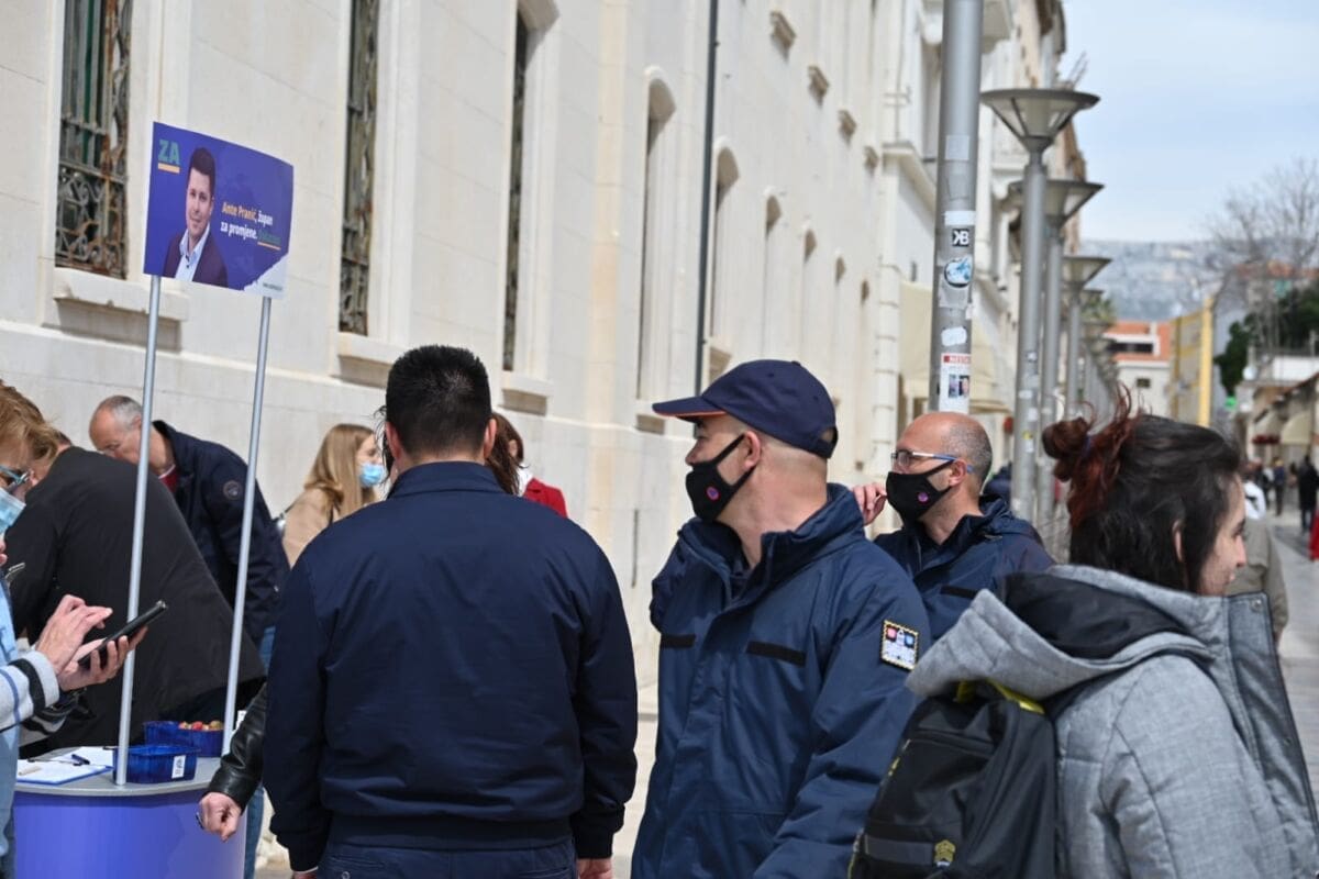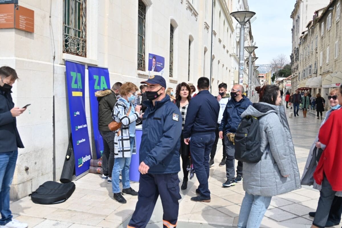 U centru grada je velika gužva, na štandove dolaze i brojni građani koji daju potpise svojim kandidatima, a sve to budnim okom prati Civilna zaštita Grada Splita.