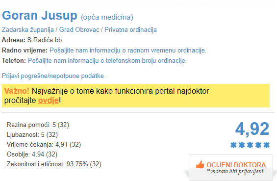 Nakon što su Hrvati preplavili društvene mreže šalama na račun nimalo smiješne priče o doktoru Goranu Jusupu iz Obrovca, prebacili su se na portal najdoktor.com gdje se svake godine, na temelju iskustava i ocjena pacijenata, biraju najliječnik i najstomatolog Hrvatske.