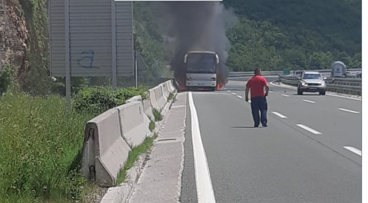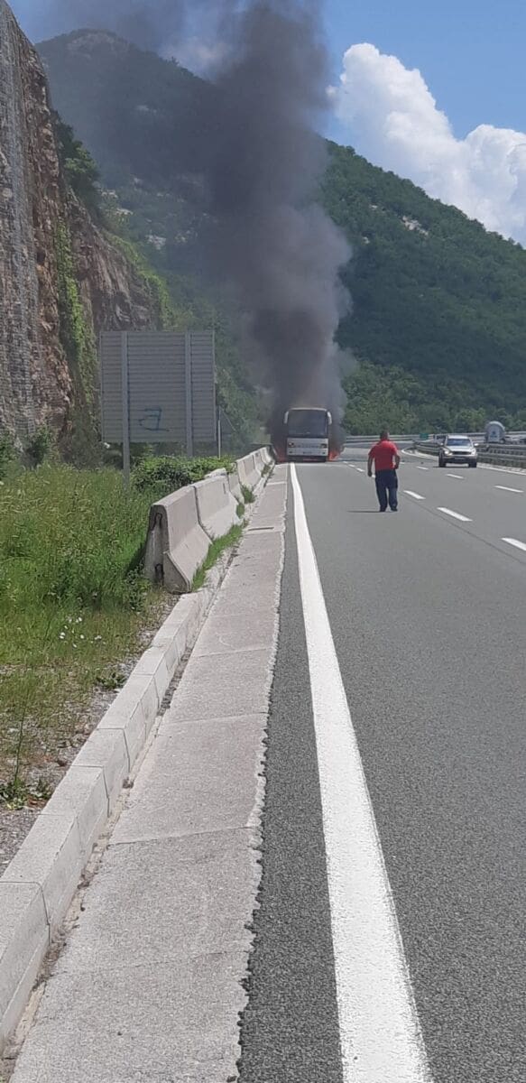 Autobus koji je prevozio 39 mladih nogometaša HRNK Zmaj i njihove trenere na turnir u Labin zapalio se i potpuno izgorio danas oko 13:30 sati, na cesti nedaleko od naplatnih kućica kod Grobnika.