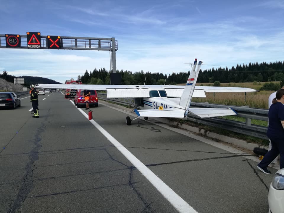 Avion je sletio na kolnik u smjeru Rijeke. Centar 112 obavijestio sve žurne službe. Vatrogasci HAC-a izašli na mjesto događaja.