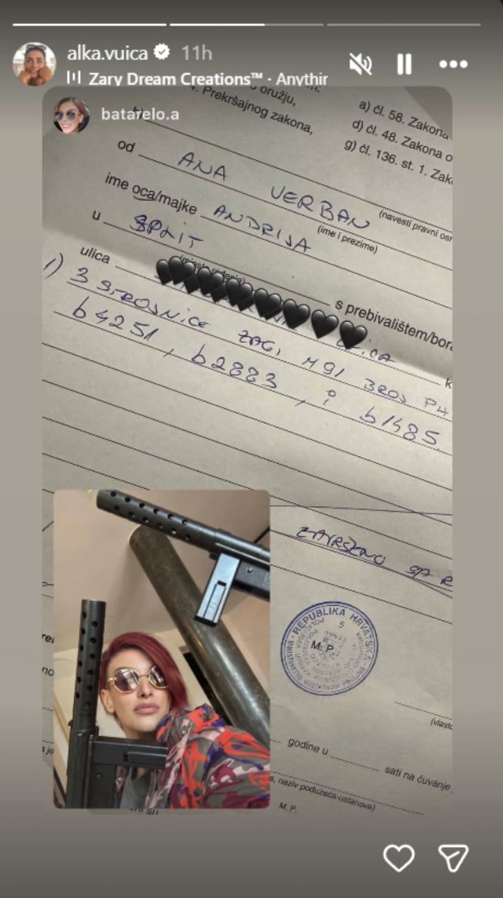 Unatoč objašnjenju da je riječ o filmskim rekvizitima za koje postoji dokumentacija, situacija je, prema njezinim riječima, završila privođenjem, a predmeti su tretirani kao vojno naoružanje.
