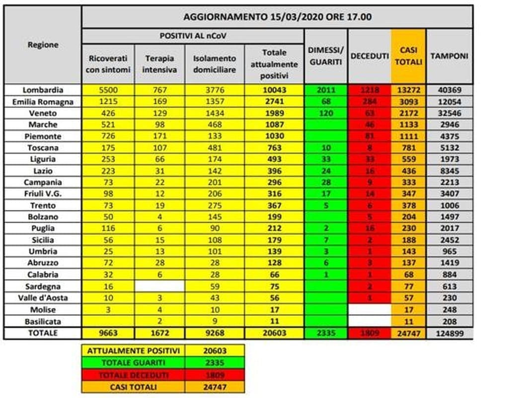 U Italiji je od početka epidemije koronavirusa 24.747 ljudi oboljelo od virusa Sars-CoV-2. To je za 3.590 više nego jučer, u postotku 17 posto više.