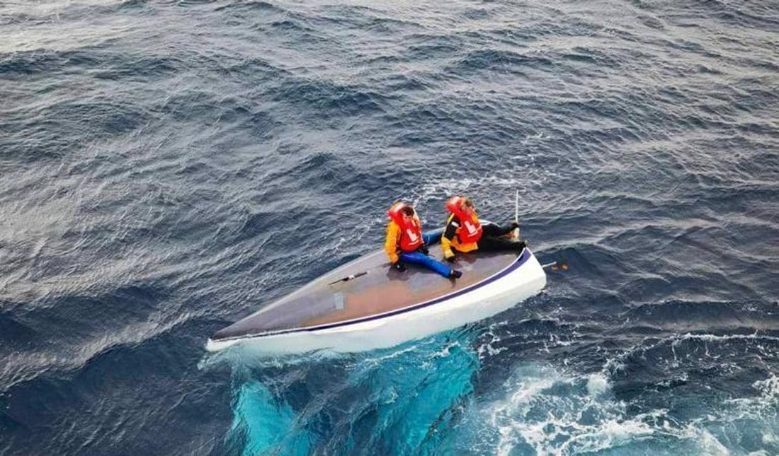 Posada trajekta Lošinj koji plovi na liniji Valbiska - Lopar je u trenutku povratka u Valbisku opazila u moru oštećenu jedrilicu s dva člana posade koji su bespomoćno plutali na moru.