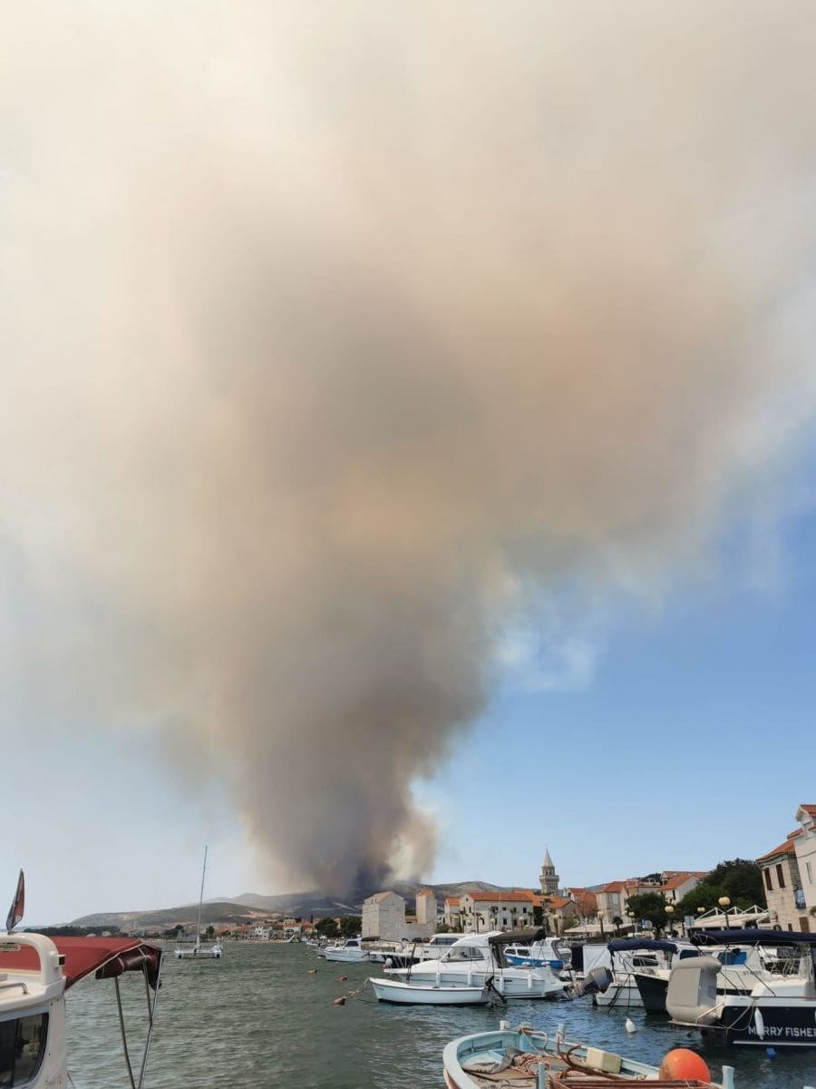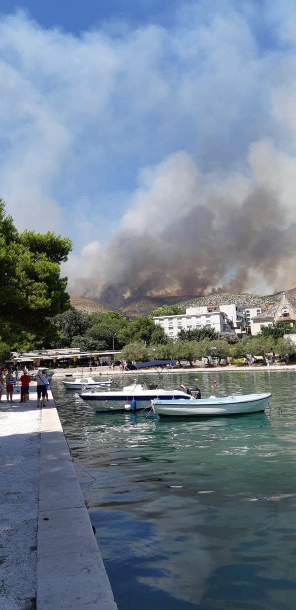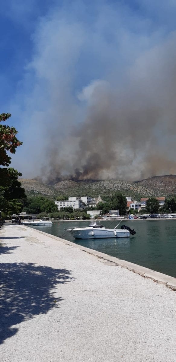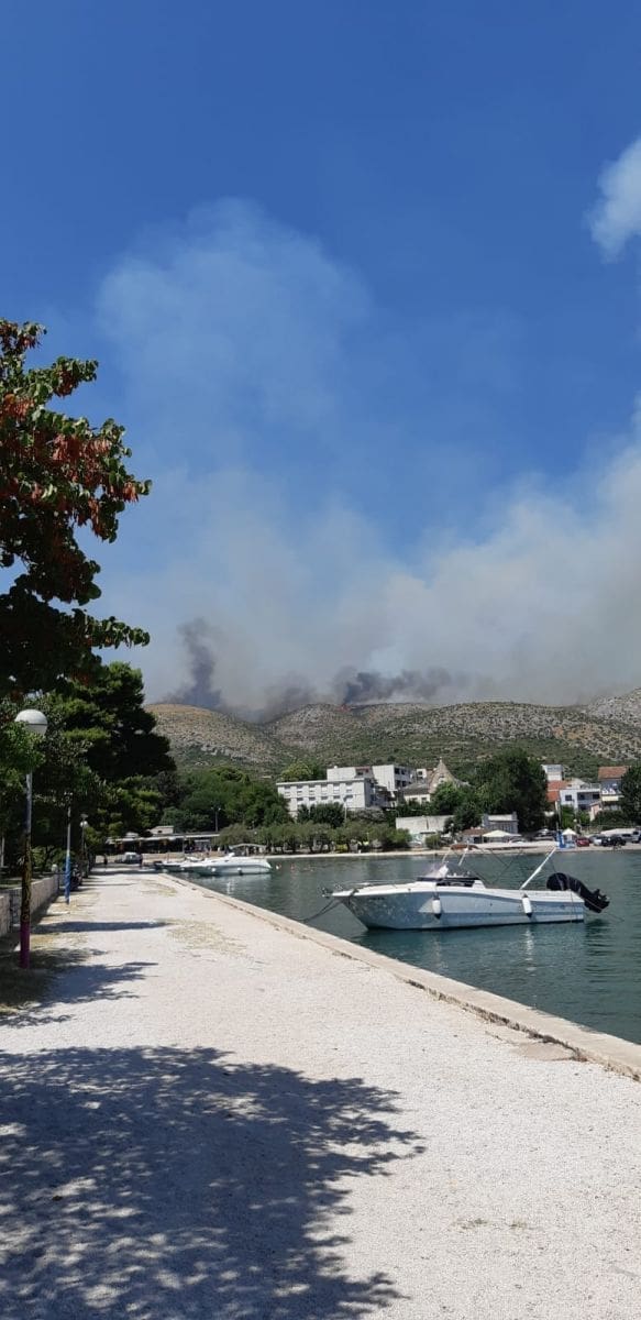 Čitatelji nam javljaju da je velika vatrena buktinja vidljiva i na brojnim plažama trogirskog područja te da se mjestom širi nesnosan miris.