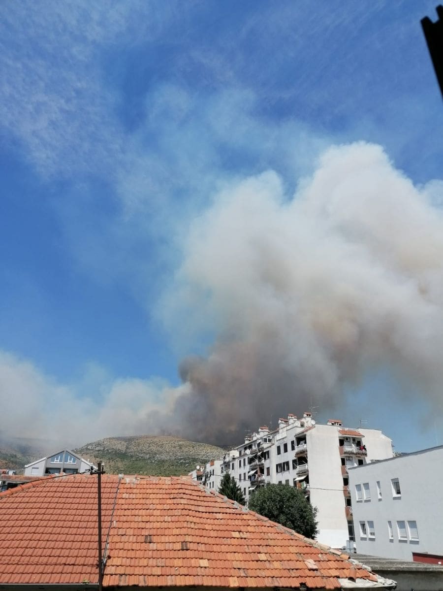 Iz neslužbenih, ali pouzdanih informacija doznajemo da se požar širi na brdovito području. Požar je nošen vjetrom i vrlo brzo širi.
