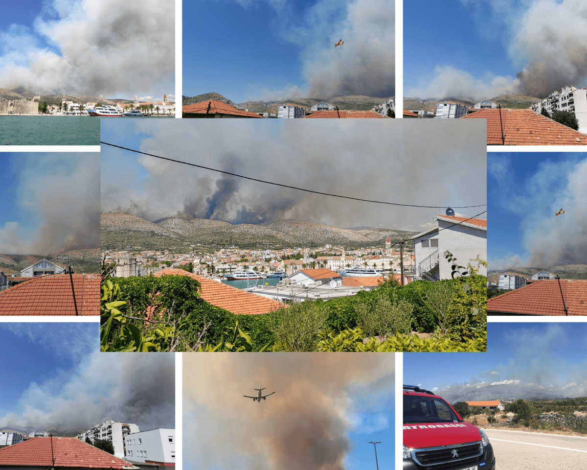 Kako doznajemo od županijskog vatrogasnog zapovjednika Ivana Kovačevića, požar se dogodio na širem trogirskom području i sve vatrogasne snage s područja Trogira i Kaštela upućene su na požarište.