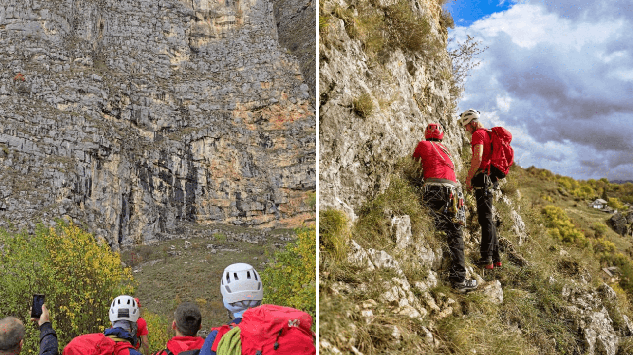Zbog mokre trave i klizavih stijena, pristup je bio iznimno težak. Spasioci su odlučili krenuti paralelnim usponom kroz sipar, nakon čega su pažljivo prešli stijenu i pozicionirali se iznad prestrašenog psa.