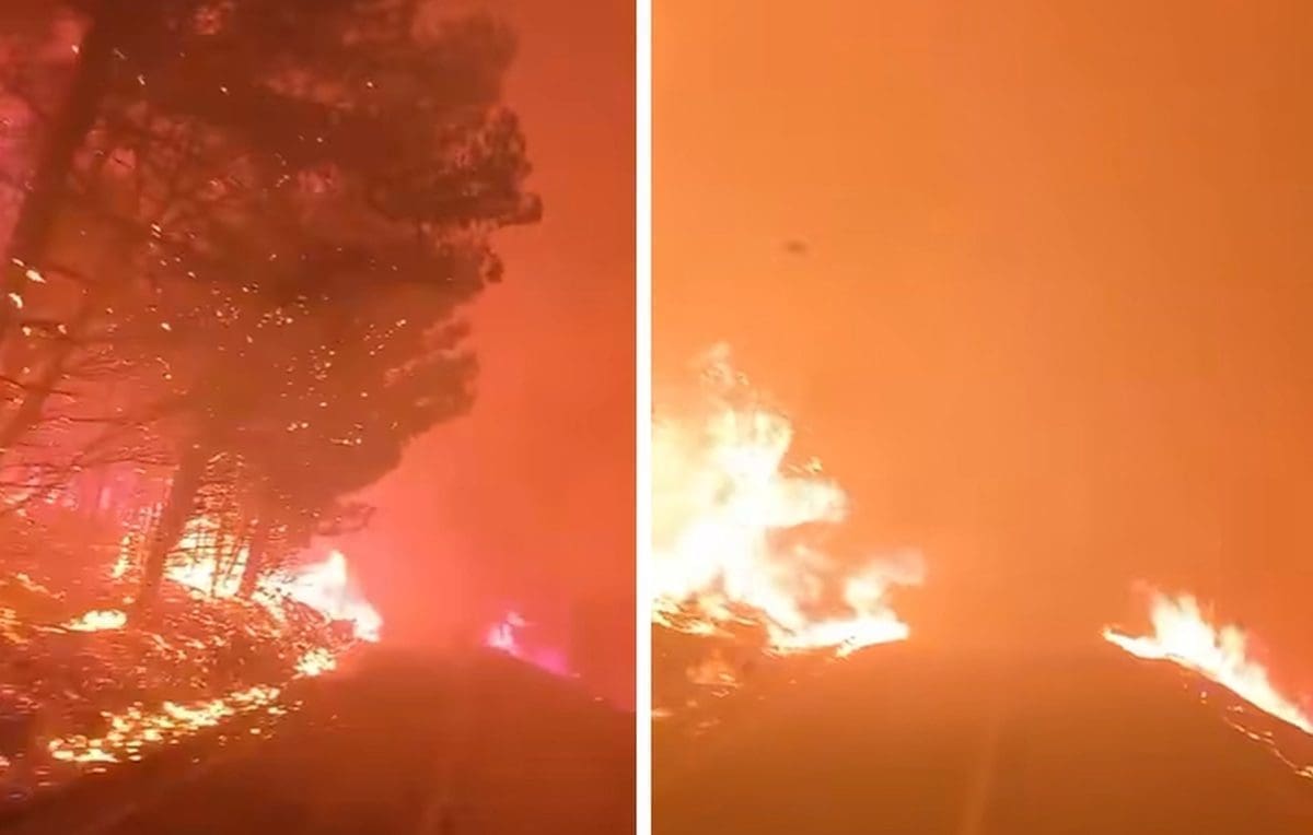 "Povlačimo se. Bože pomozi", čuje se iz vozila dok su vatrogasci prolazili kroz vatrenu buktinju.