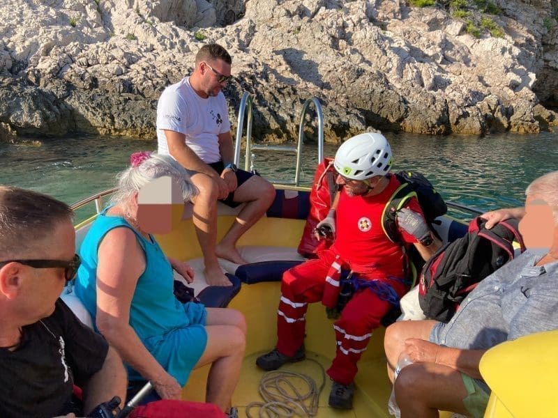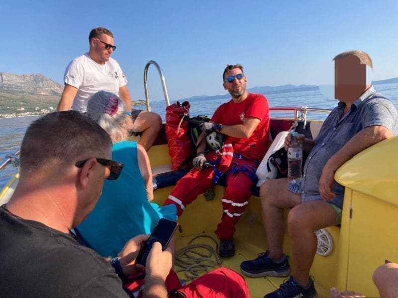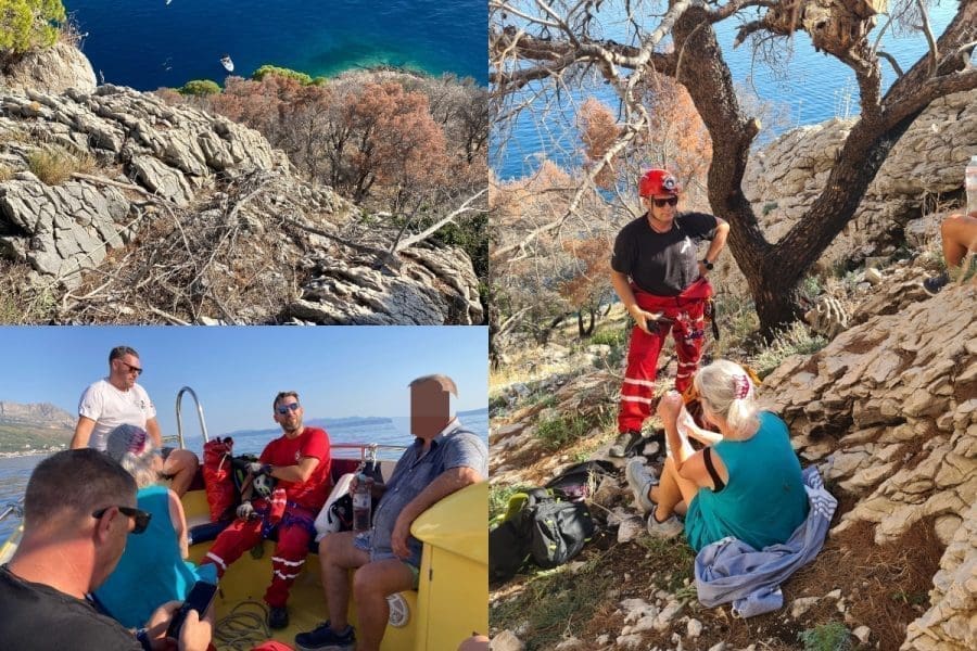 Unesrećeni su zatečeni dehidrirani i u stanju šoka te su nakon zbrinjavanja spušteni uz pomoć užeta do najbliže pozicije odakle ih preuzima ekipa sa privatnim mobiliziranim plovilom te ih transportira do lučice u Tučepi, odakle su dalje transportirani do hotela u kojem su smješteni.