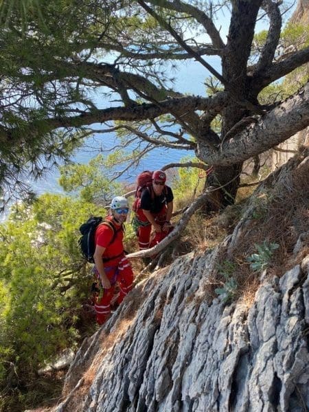 Odmah po dojavi na teren je izašlo pet spašavatelja od kojih trojica pristupaju spuštanjem niz 25 metarsku liticu, dok ostala dvojica organiziraju pristup sa mora.