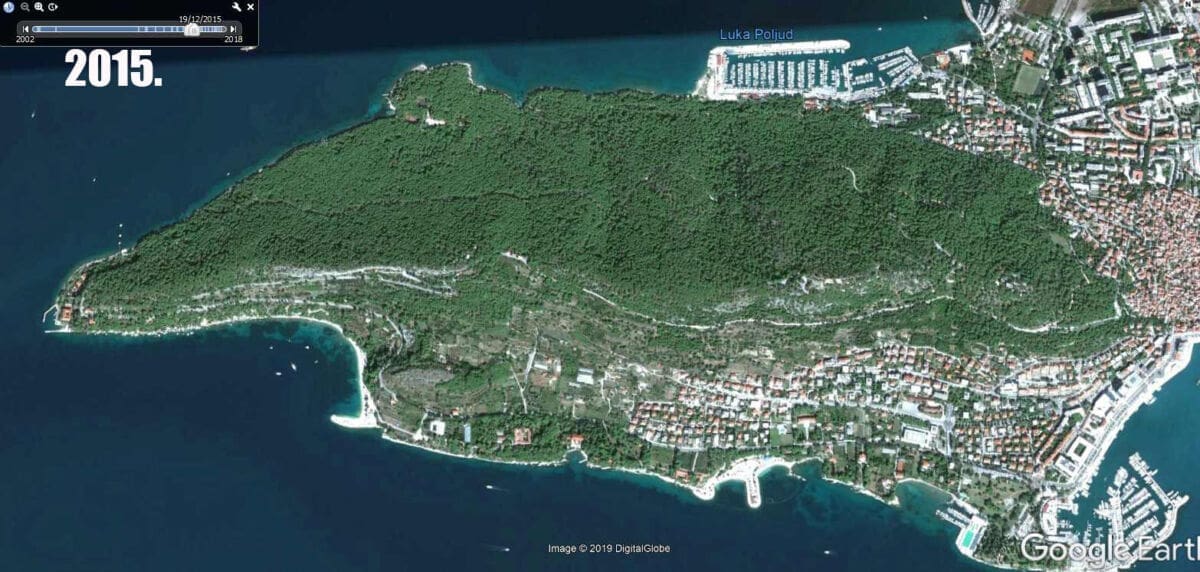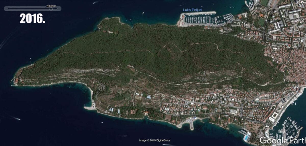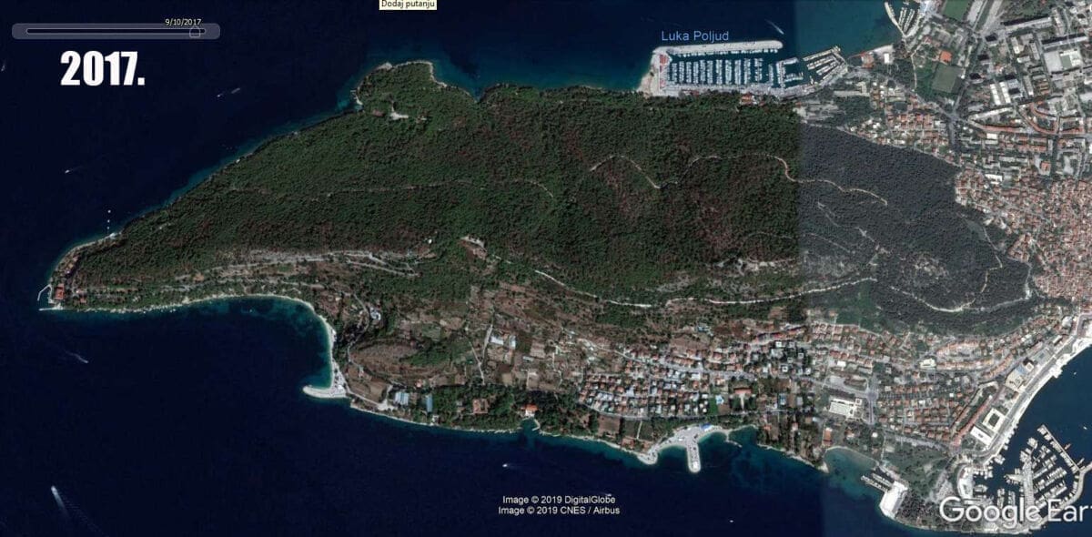 "Pobjeda" - pisalo se po društvenim mrežama, no radi li se o preuranjenom slavlju ili "Pirovoj pobjedi", uskoro ćemo vidjeti. Da razloga za bilo kakvo slavlje nema najbolje govori pogled, ni manje ni više nego - iz svemira! Naši političari nemaju mogućnost uljepšati snimke objavljene na Google Earthu, a one su zaista više nego indikativne. Od potpunog zelenila koje je vladalo Marjanom 2014. i 2015., sljedeće tri godine mediteranski potkornjak malo po malo uništavao je dijelove šume, a posljednja dostupna snimka napravljena je 2. listopada 2018., taman negdje u vrijeme kada se potkornjak uspavao prije dalmatinske zime i prije nego će ovog proljeća nastaviti svoj pohod na marjansku borovinu.