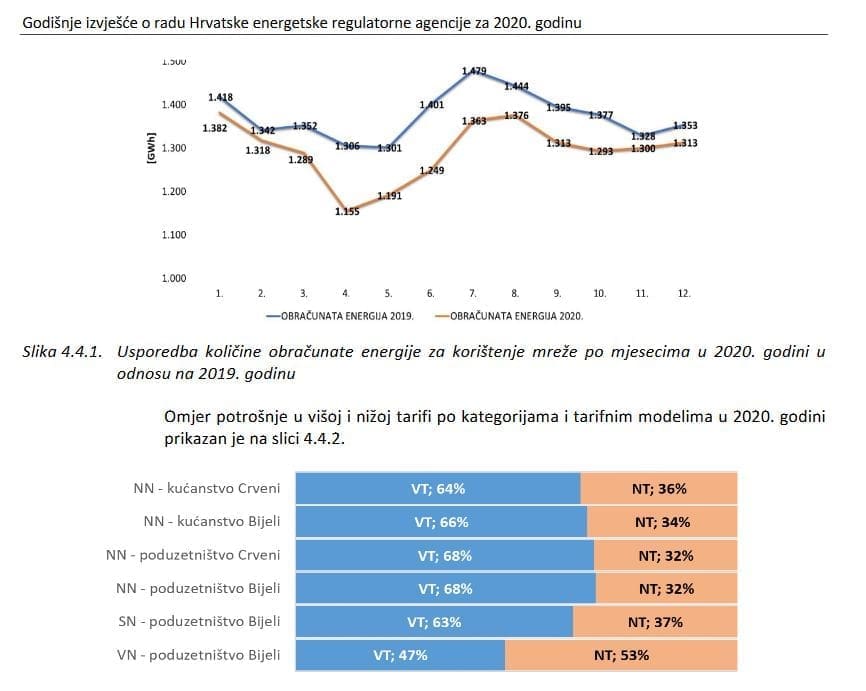 HERA je izvijestila da je zbog posljedica ograničenja gospodarskih i svih drugih aktivnosti zbog pandemije COVID-19 najveći pad prodaje bio kod kategorije poduzetništvo na niskom naponu, tarifni model plavi (14,8%) i bijeli (12,9%). Pad prodaje kod kategorije kućanstvo bio je svega 2% zbog rada od kuće i akontacijskog sustava obračuna električne energije (polugodišnje obračunsko razdoblje) te manjeg očitavanja brojila zbog epidemioloških mjera. Porast proizvodnje hidroelektrana krajem 2020. godine, uz proizvodnju vjetroelektrana i distribuiranih izvora energije, za posljedicu je imao da je Republika Hrvatska u određenim danima bila fizički neto izvoznik električne energije.