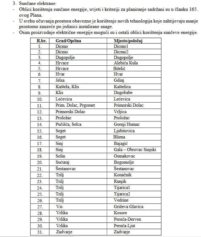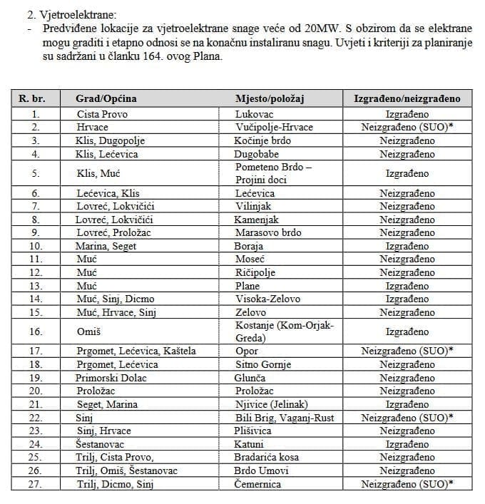 U tom smjeru išla je i Splitsko-dalmatinska županija sa svojim nedavno usvojenim Prostornim planom. Širom su otvorena vrata za vjetroparkove, mini hidroelektrane i solarne elektrane. Predstavljamo tablice s njihovim lokacijama.