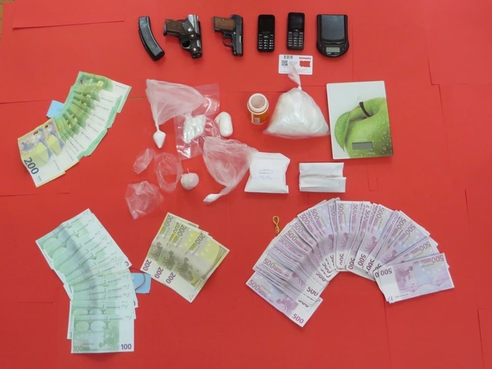 Daljnjim krim istraživanjem, obavljena je pretraga doma i drugih prostorija koje isti koristi. Pronađeno je 59,6 grama kokaina pakirano u više pojedinačnih paketića, manja količina marihuane, 119,2 grama bijele praškaste tvari nepoznatog kemijskog sastava tzv. punila namijenjenog povećanju mase droge, dvije digitalne vage za precizno mjerenje droge, pribor za pakiranje droge, novčani iznos od 39.500,00 eura za koji se sumnja da je pribavljen preprodajom droge kao i dva pištolja sa pripadajućim streljivom koje je nezakonito posjedovao.