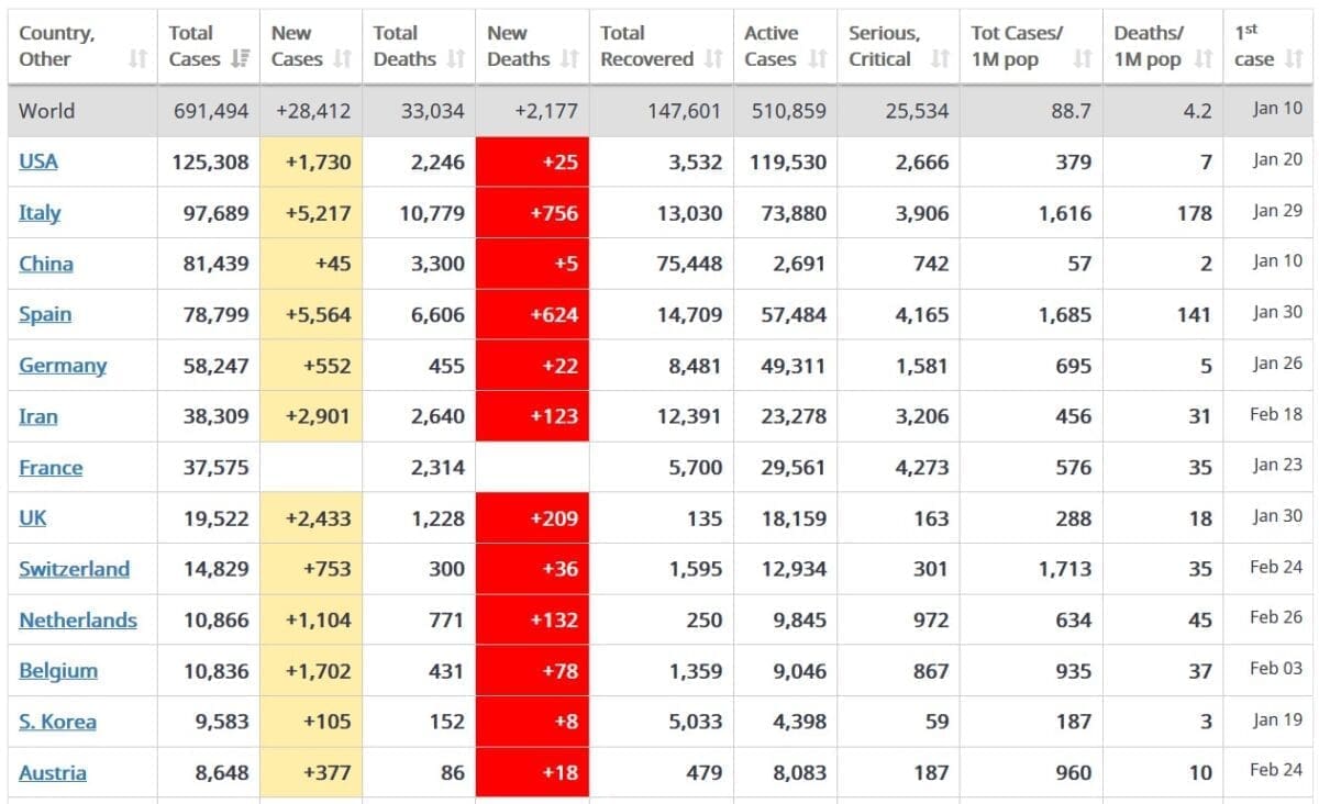 Stigli su najnoviji službeni podaci o zaraženima i umrlima od posljedica koronavirusa. Hrvatska javnost, očekivano, najviše prati razvoj situacije u Italiji, a od tamo danas stižu tek malo manje loše vijesti u odnosu na prethodna dva dana.