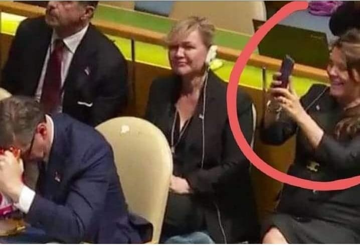 Ona se tijekom glasanja na Općoj skupštini UN-a smijala te je za to vrijeme mobitelom snimala ili fotografirala vidno uzrujanog Vučića.