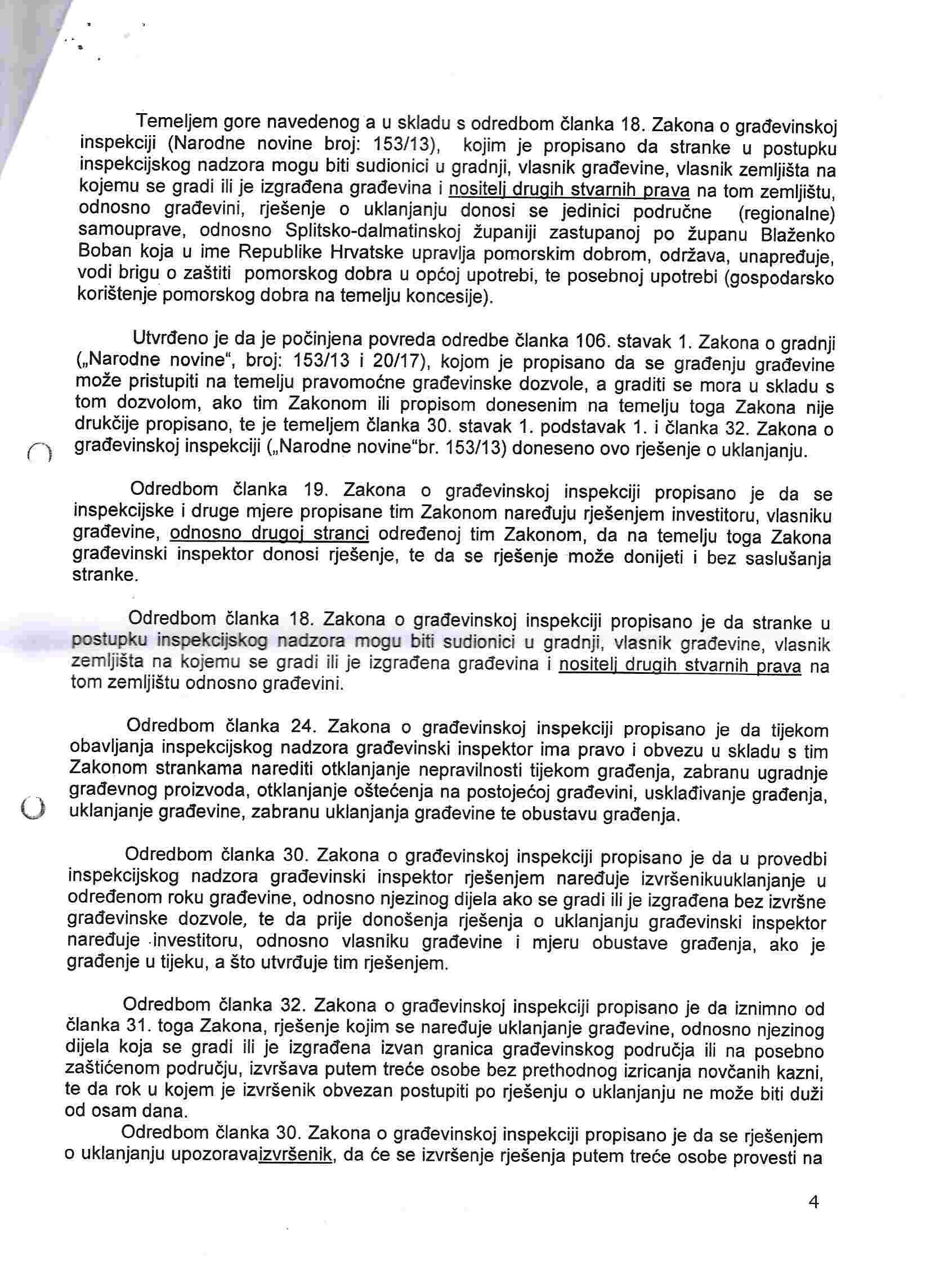 Iako su nadležna tijela i pojedinci iz Županije bili upozoravani i od strane pojedinih predstavnika u Stručnom tijelu za ocjenu ponuda za koncesije i članova Županijske skupštine, Županija je ipak pristupila postupku dodjele koncesije bez provjere legalnosti objekta kojeg daje u koncesiju.