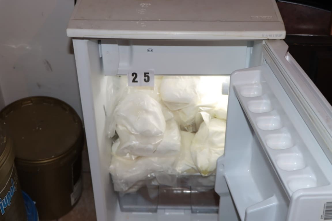 U petak, 1. rujna pretragom poslovnog prostora policijski službenici su pronašli ukupno 20334,0 grama amfetamina pakiranog u 21 paket, ukupno 368,0 grama MDMA, dvije digitalne vage s tragovima droge te predmete za pakiranje droge.