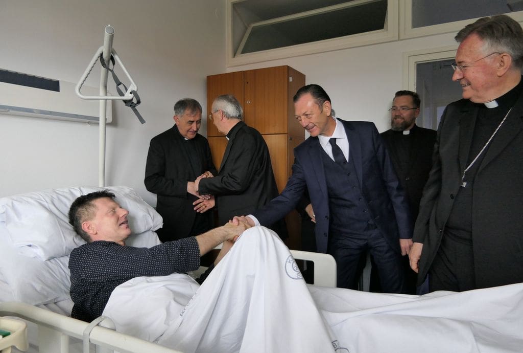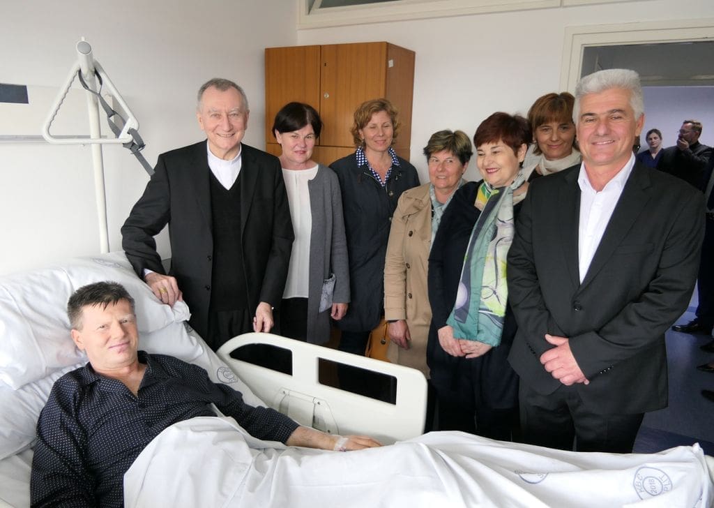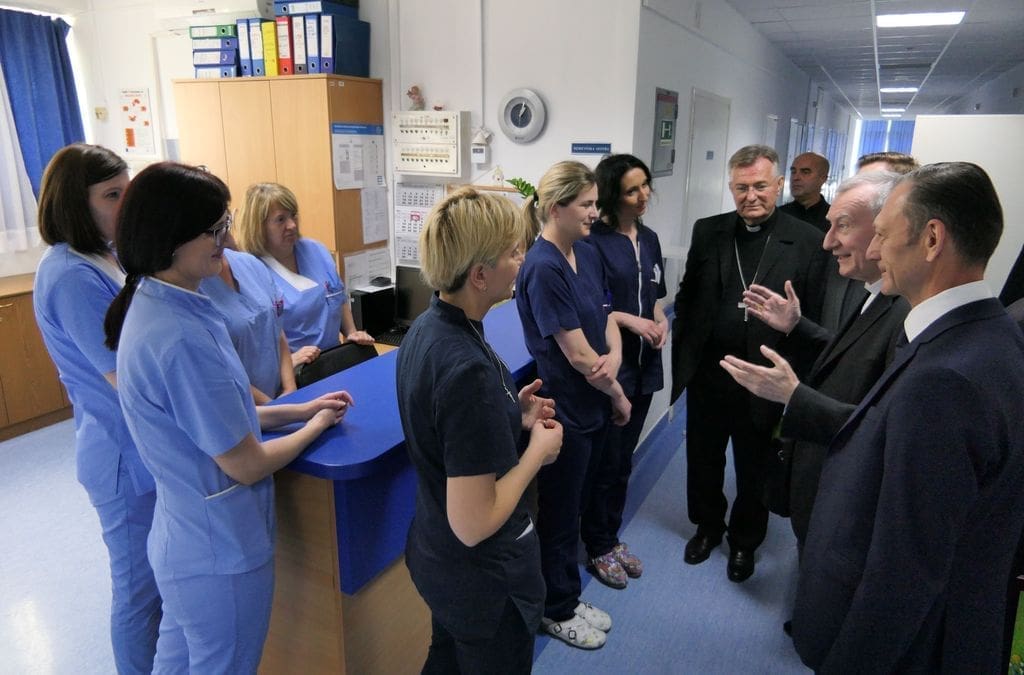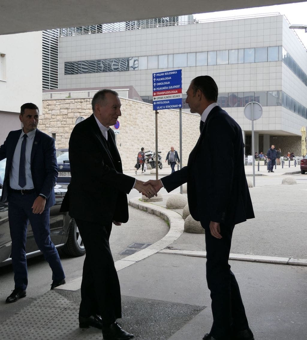 Pred splitskom bolnicom goste je dočekao ravnatelj KBC-a prof. dr. Julije Meštrović, glavna sestra Marija Grančić te bolnički kapelan don Tomislav Topčić.