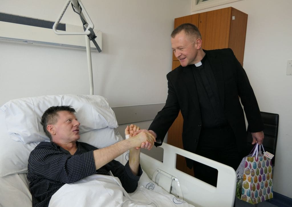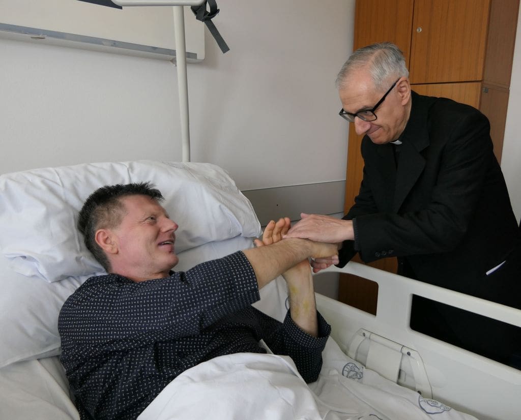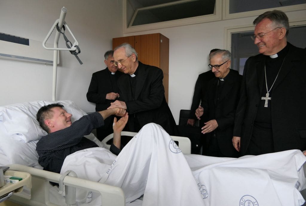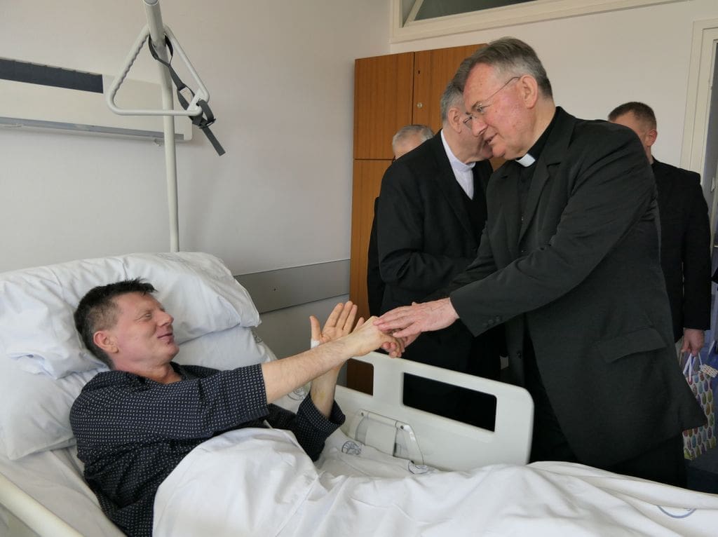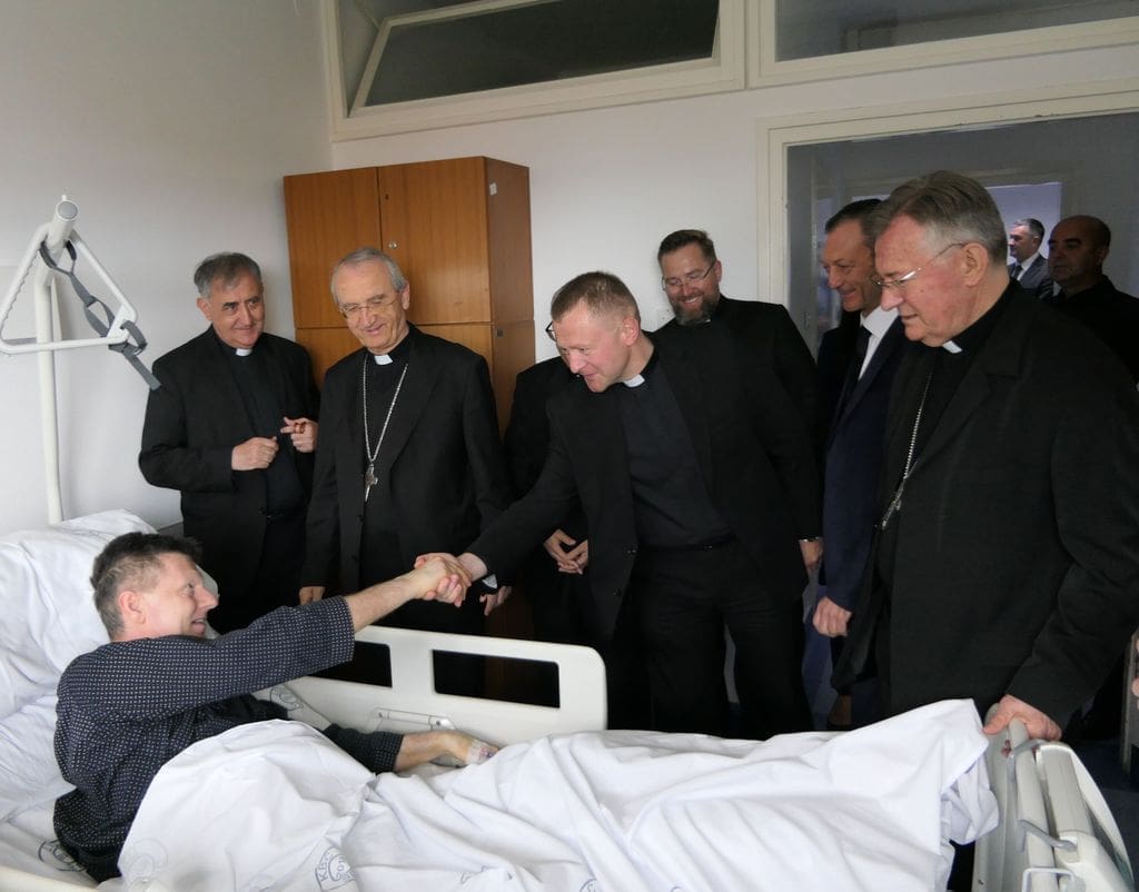 Pred splitskom bolnicom goste je dočekao ravnatelj KBC-a prof. dr. Julije Meštrović, glavna sestra Marija Grančić te bolnički kapelan don Tomislav Topčić.