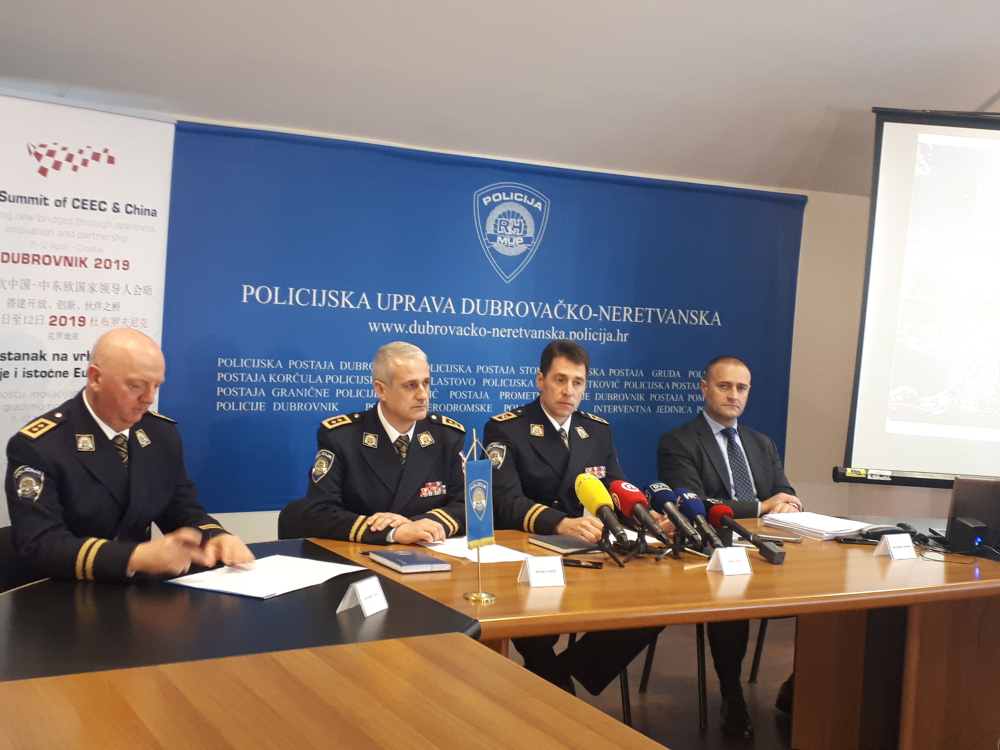 Završetkom uspješno odrađenih mjera osiguranja 8. sastanka na vrhu šefova država zemalja srednje i istočne Europe i Kine te 9. poslovnog foruma zemalja srednje i istočne Europe i Kine danas, 13. travnja, u Policijskoj upravi dubrovačko-neretvanskoj održana izvanredna konferencija za novinare.