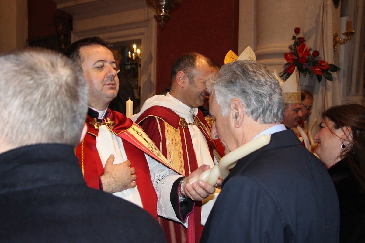 Po otvorenju Feste u poslijepodnevnim satima župan Dobroslavić sa zamjenicima Cebalo i Marević grličao se u crkvi svetog Vlaha.