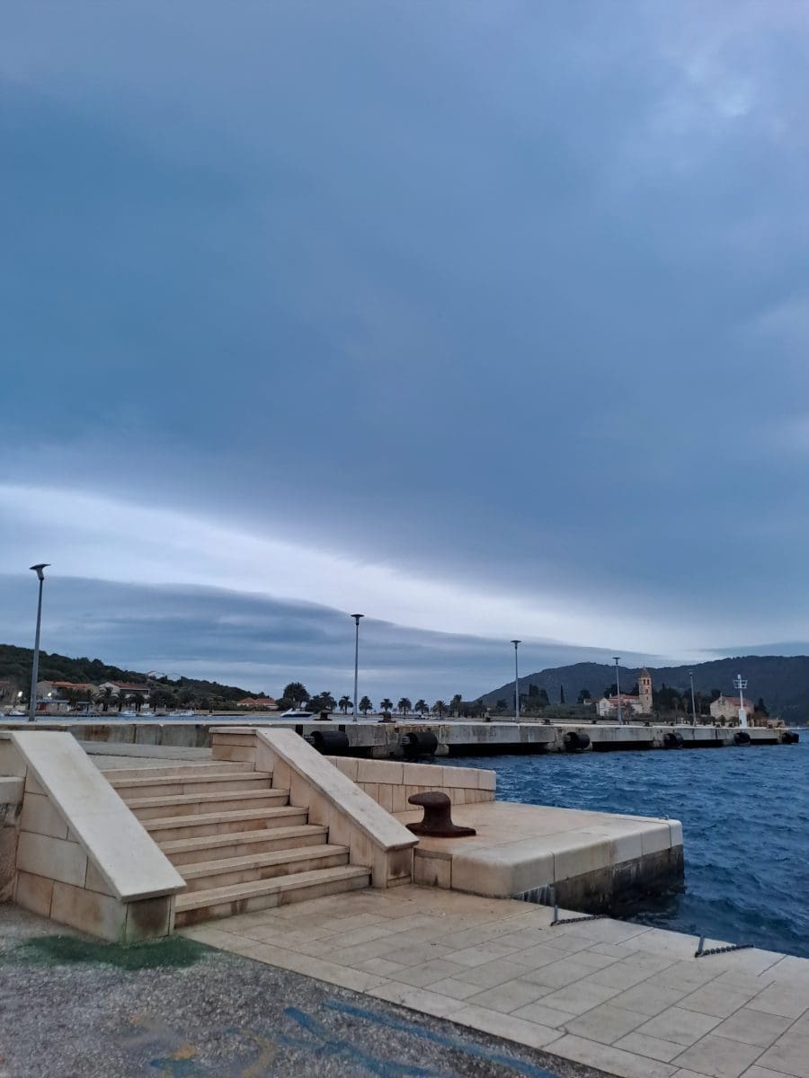 Kad na Visu zimi „udre” južina i noć u sekundu obgrli otok po uskim kaletama doslovno nema nikoga. Još ako pada kiša... Nigdje nikoga. Ni starog ni mladog. Svi su se uvukli u kuće. Izležavaju se, kunjaju, gledaju filmove, televiziju, a neki nešto i rade. Tek se u daljini naziru svjetla kafića. Unatoč huku vjetra čuje se žamor i glazba.