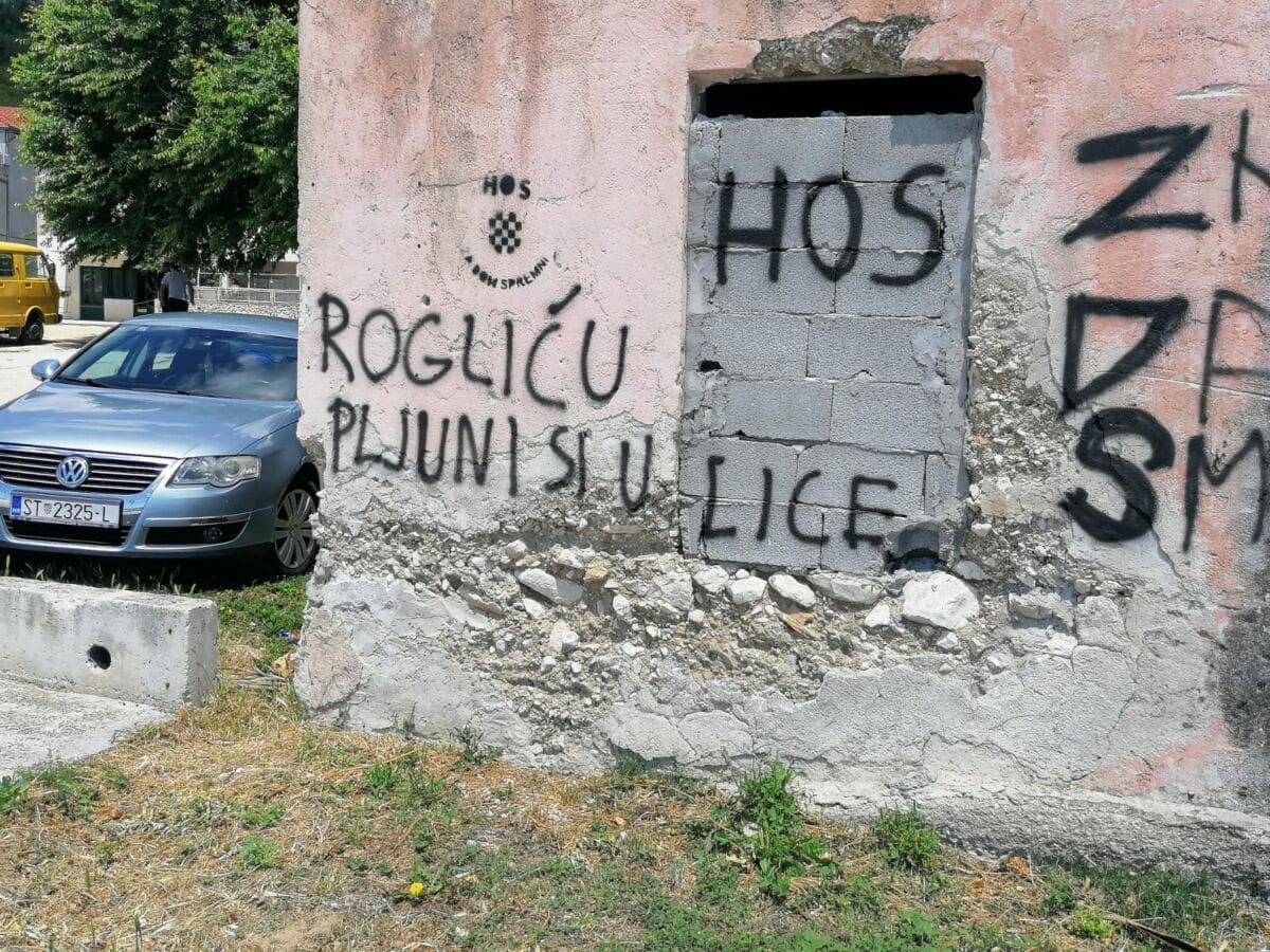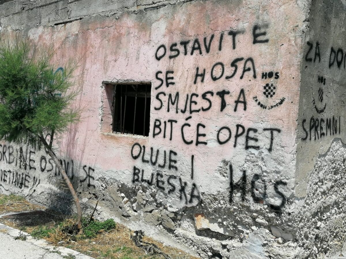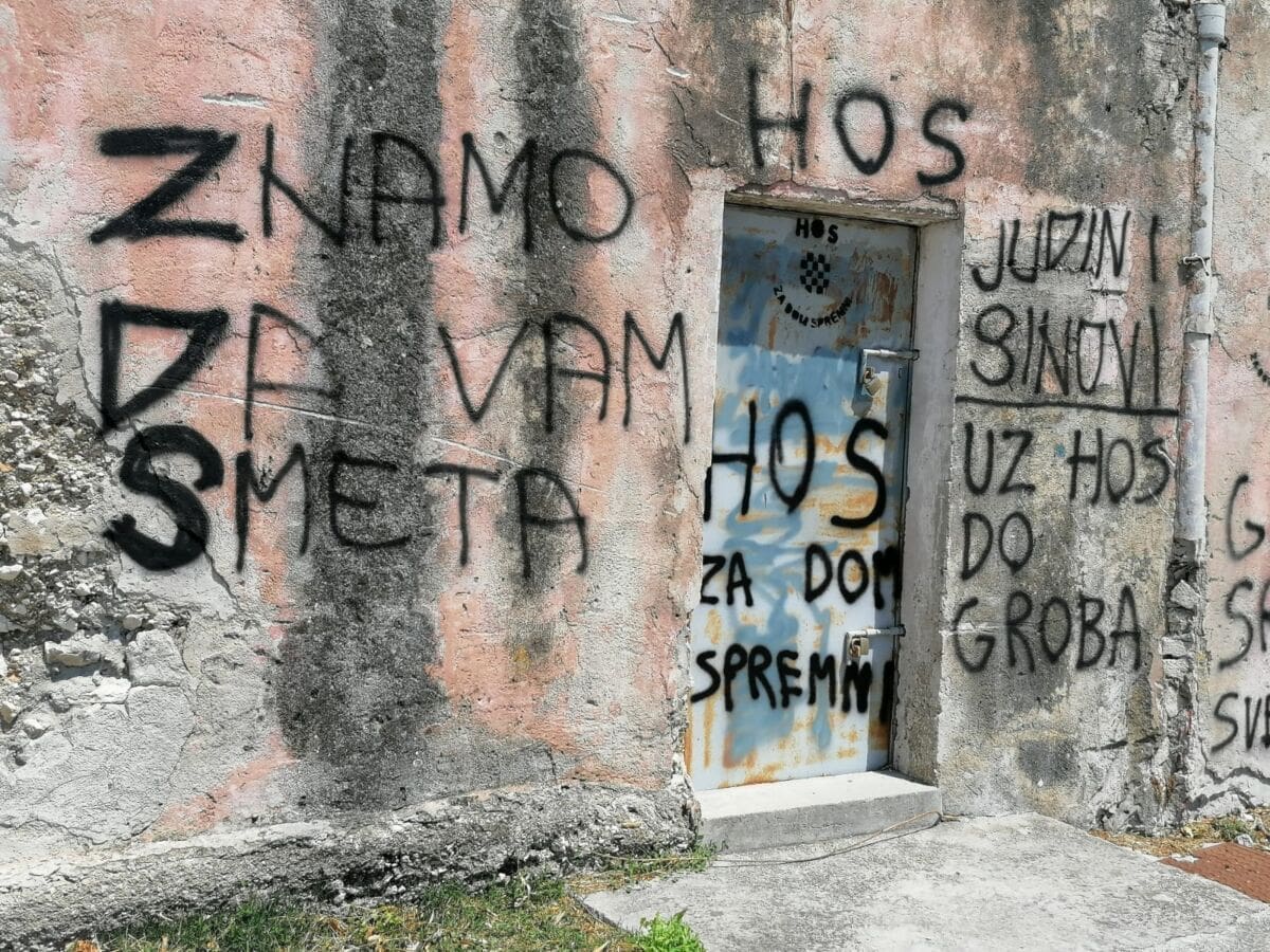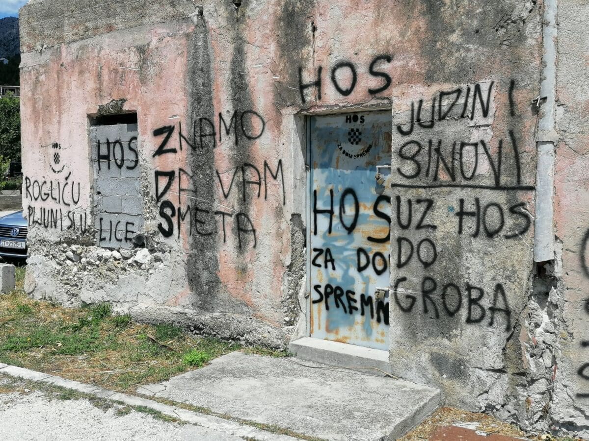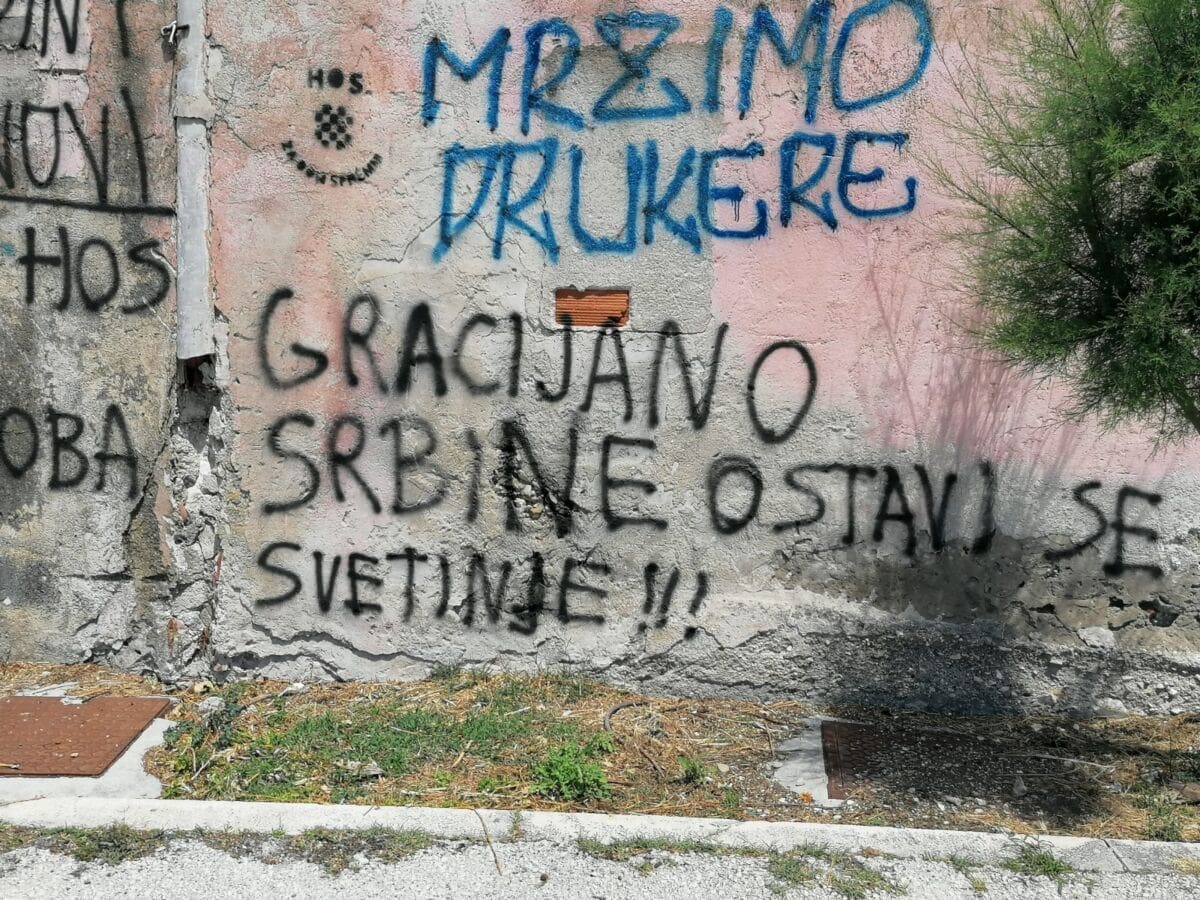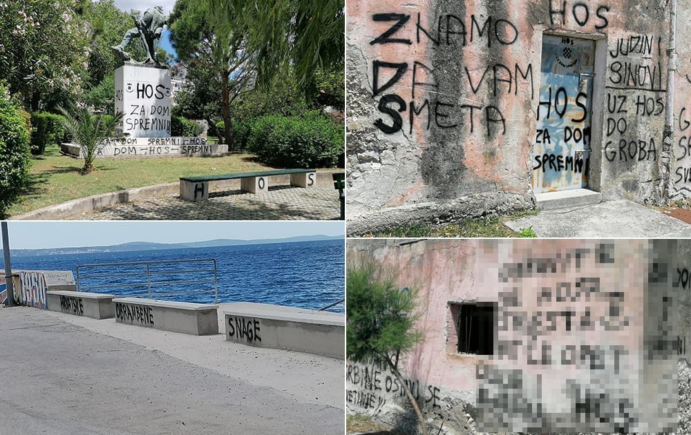 "Ostavite se HOS-a smjesta, bit će opet Oluje i Bljeska", "Rogliću, pljuni si u lice", "Gracijano Srbine ostavi se svetinje", samo su neke od poruka nepoznatih vandala na brojnim javnim površinama. Posljednja je upućena građaninu koji je odlučio istupiti javno tražeći da se mural HOS-a ukloni s autobusne stanice.