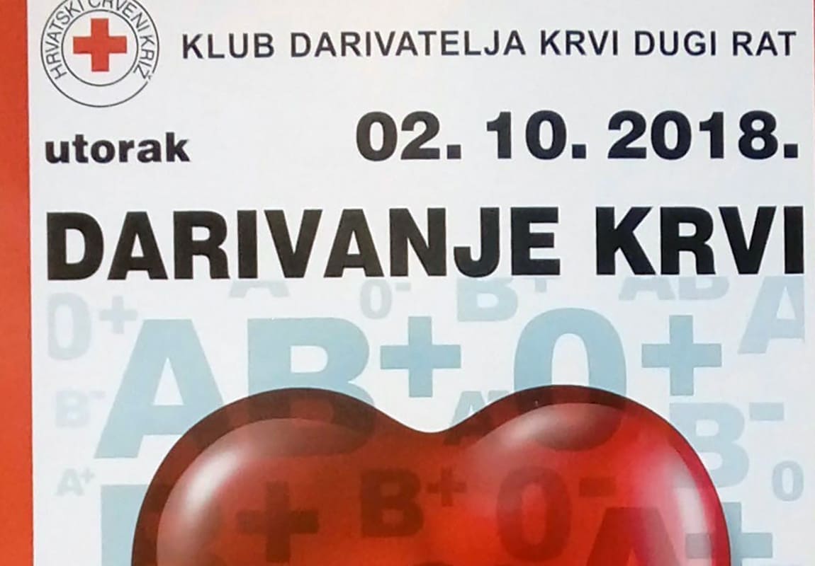 Klub dobrovoljnih darivatelja krvi Dugi Rat organizira još jednu akciju darivanja krvi!