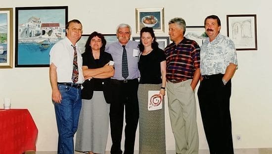 Fotografija s prve izložba Kruga, 26.06.1997.godine. Na slici je prvo predsjedništvo PLU KRUG: Joško Čizmić, Diana Jurin, pok. Branko Vojnović načelnik općine Dugi Rat, Dijana Nazor, Stipe Kadić, pok. Ante Prlić.